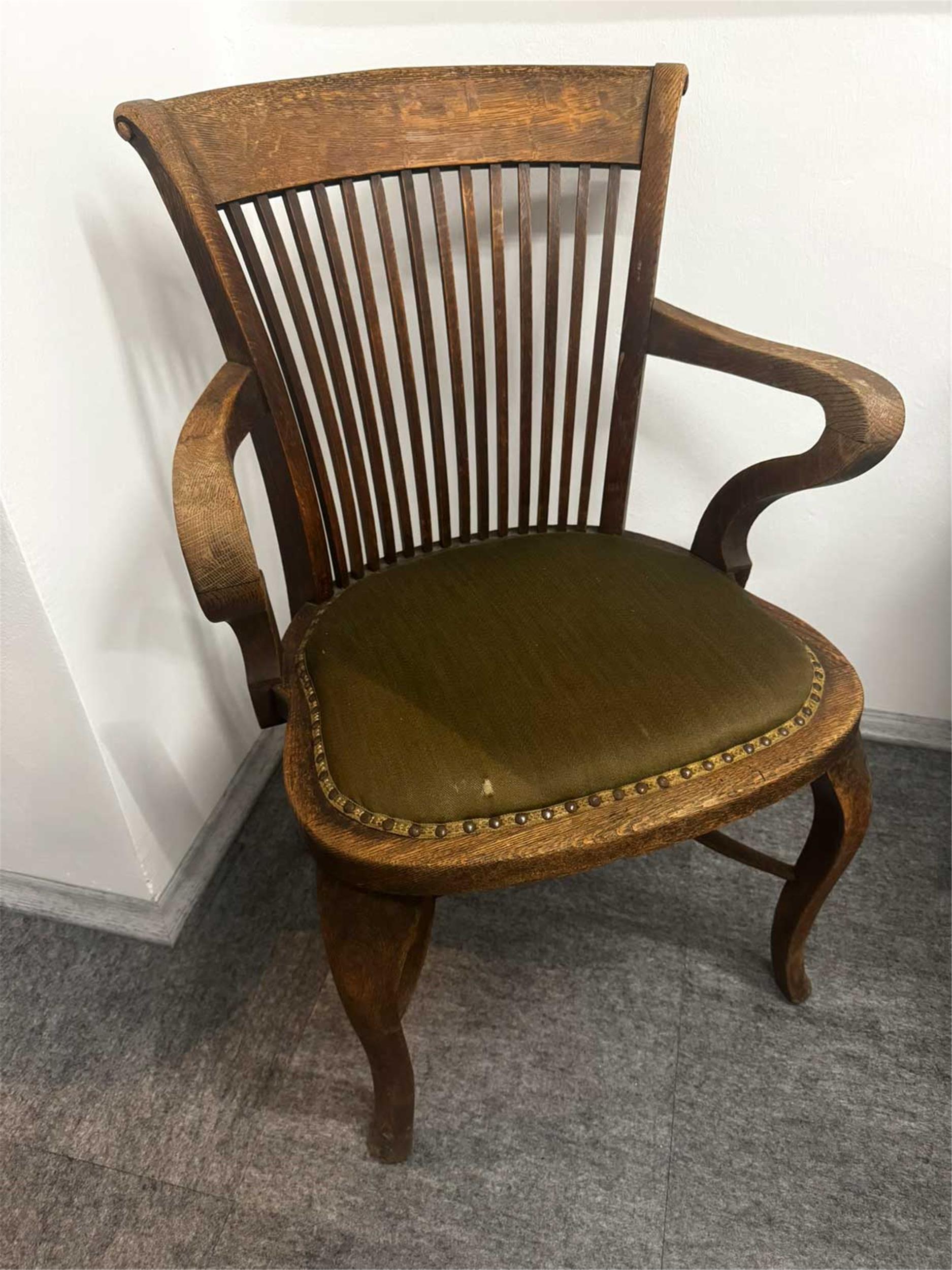 Armlehnstuhl, Eiche massiv, Wien, 1. Viertel 20. Jahrhundert, Variante nach dem Entwurf von Adolf Loos für das Café Capua, guter unrestaurierter Zustand.