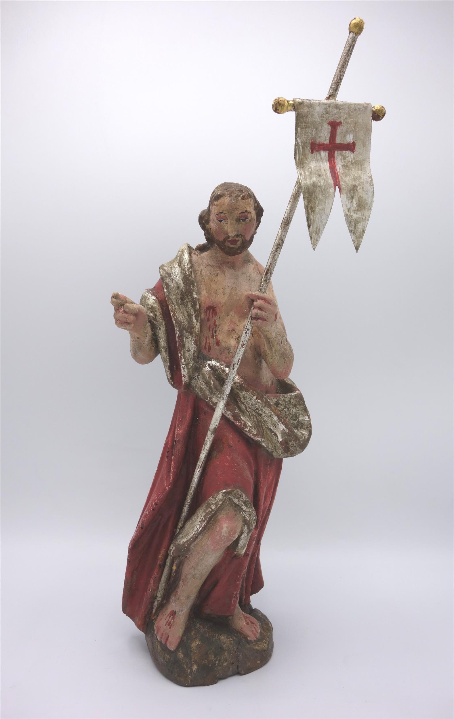 Auferstandener Christus, Lindenholz geschnitzt und farbig gefasst, alpenländisch, Anfang 19.Jh., sehr guter, restaurierter Zustand mit weitestgehend erhaltener Originalsubstanz.