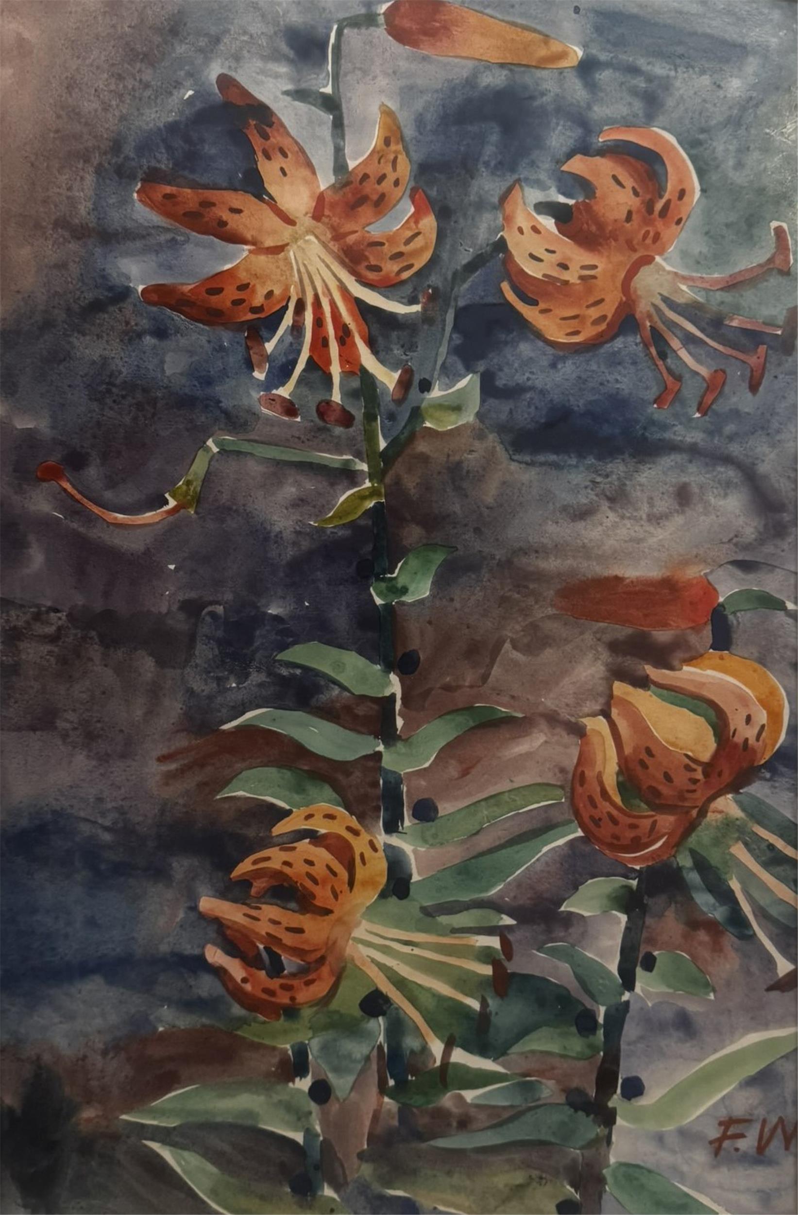 Gouache auf Papier, Türkenbundlilien, monogrammiert, Franz Weiss, (1921-2014).