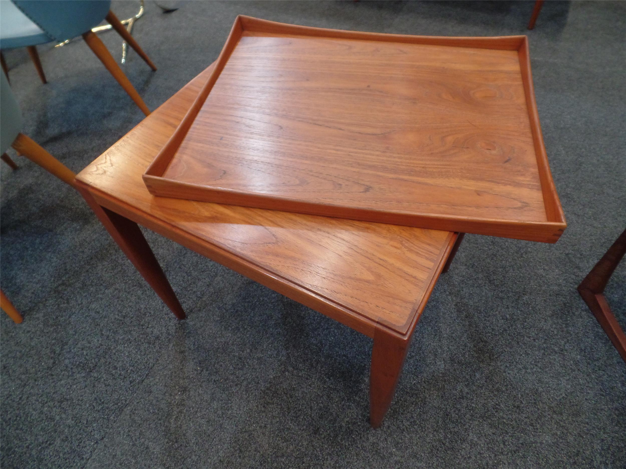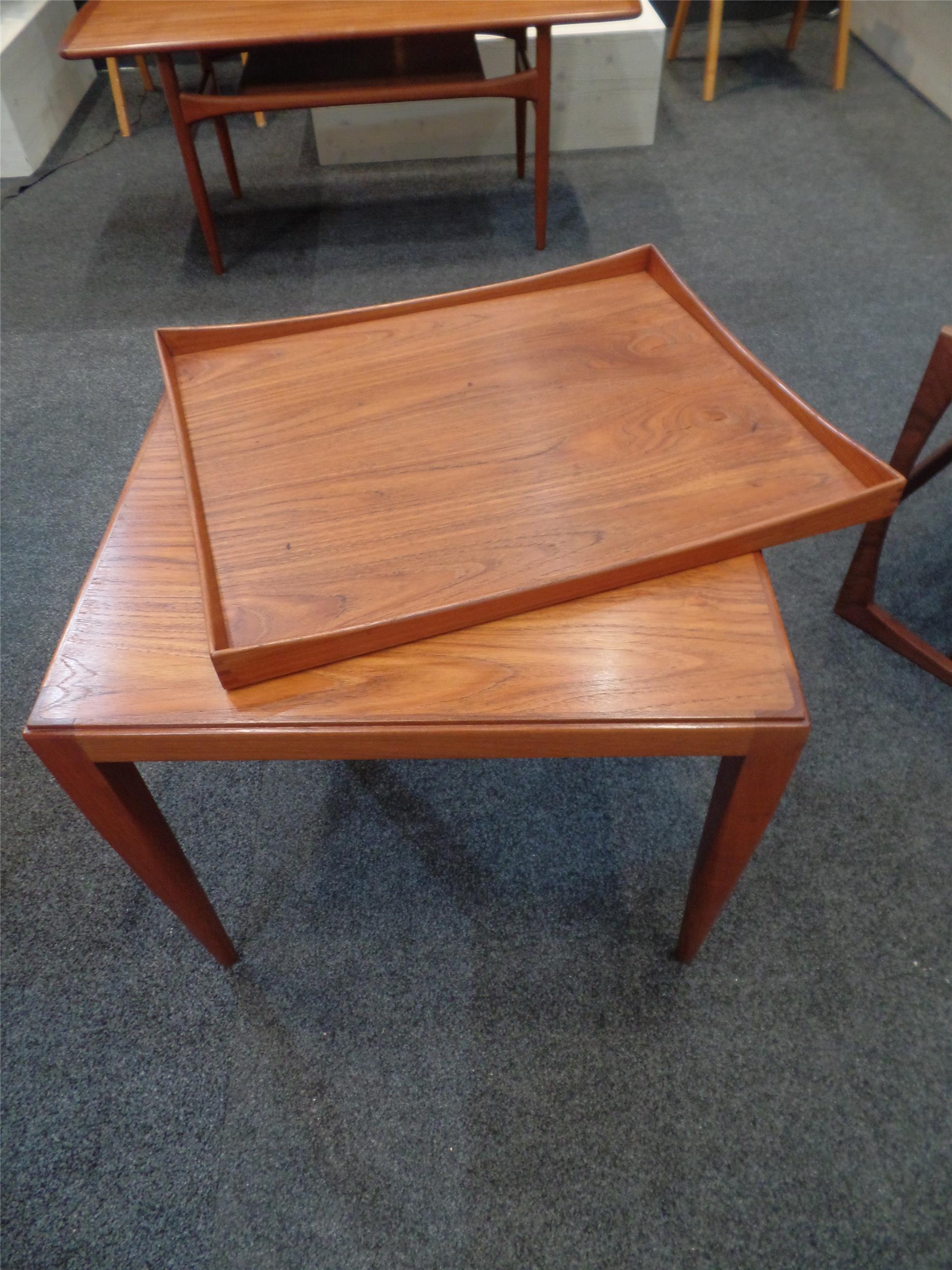 Seltener Beistelltisch mit Tablett, Entwurf Poul M. Jessen, Ausführung Dänemark 1960-er in Teakholz massiv, sehr guter Zustand, Preis ab Geschäftslokal.
