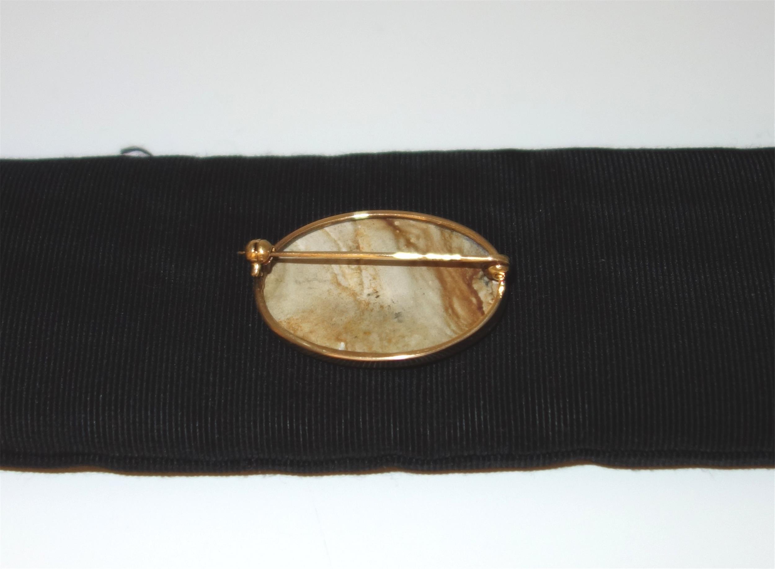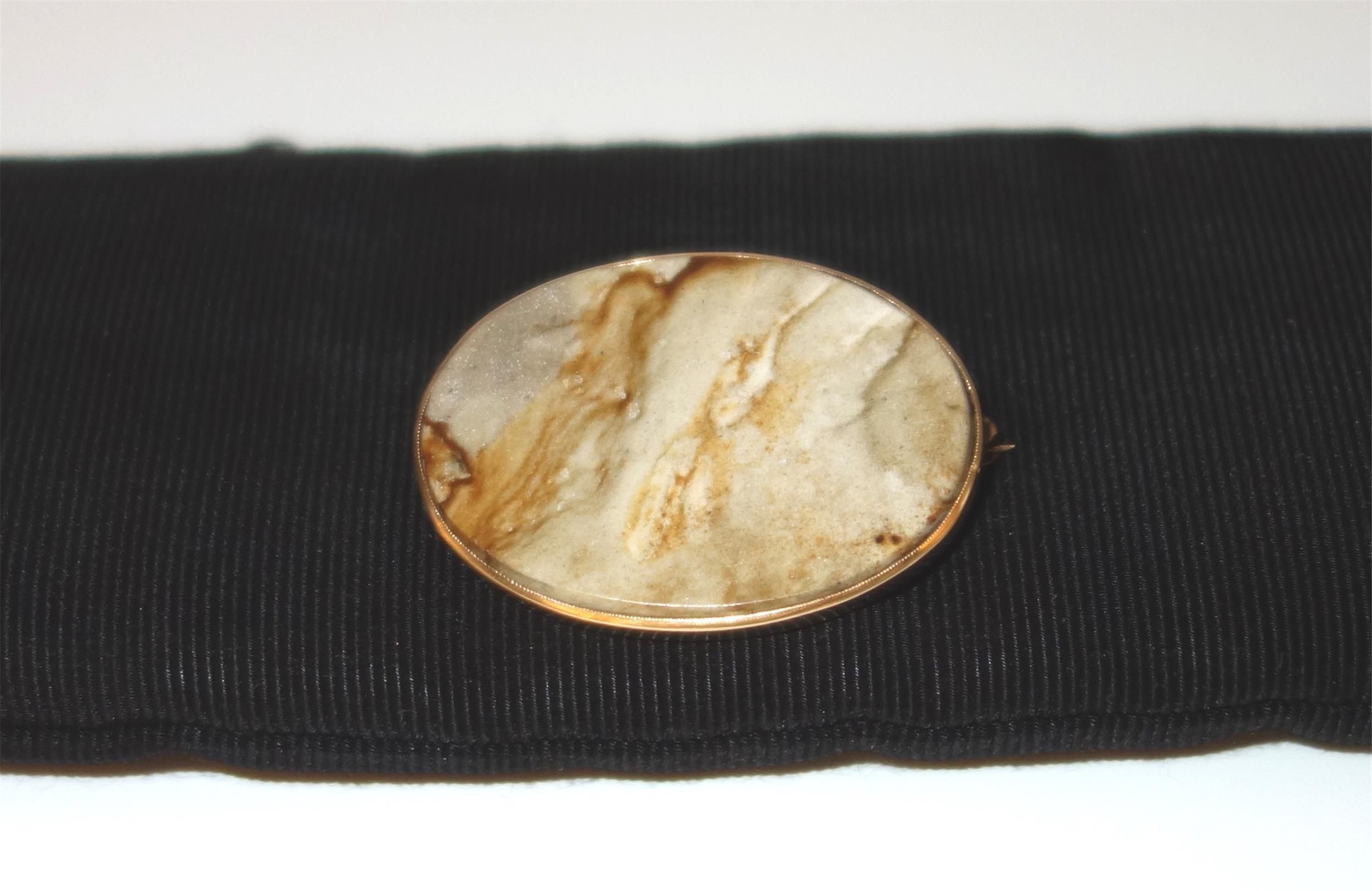 Brosche mit fein gezeichnetem Marmor, 14 Karat Gold, so genannter Ruinenmarmor, 20.Jahrhundert.