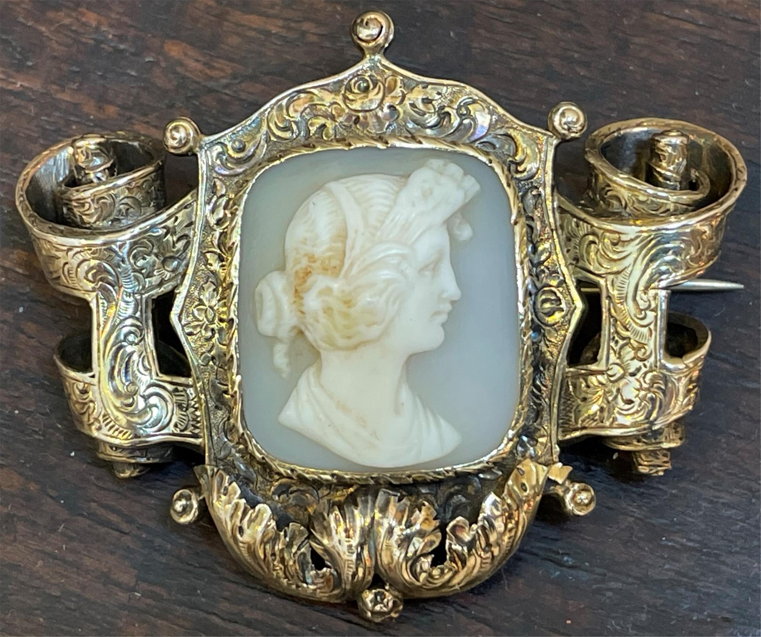 Historismus - Brosche, 14 ct Gold mit Kamee, Österreich, um 1880