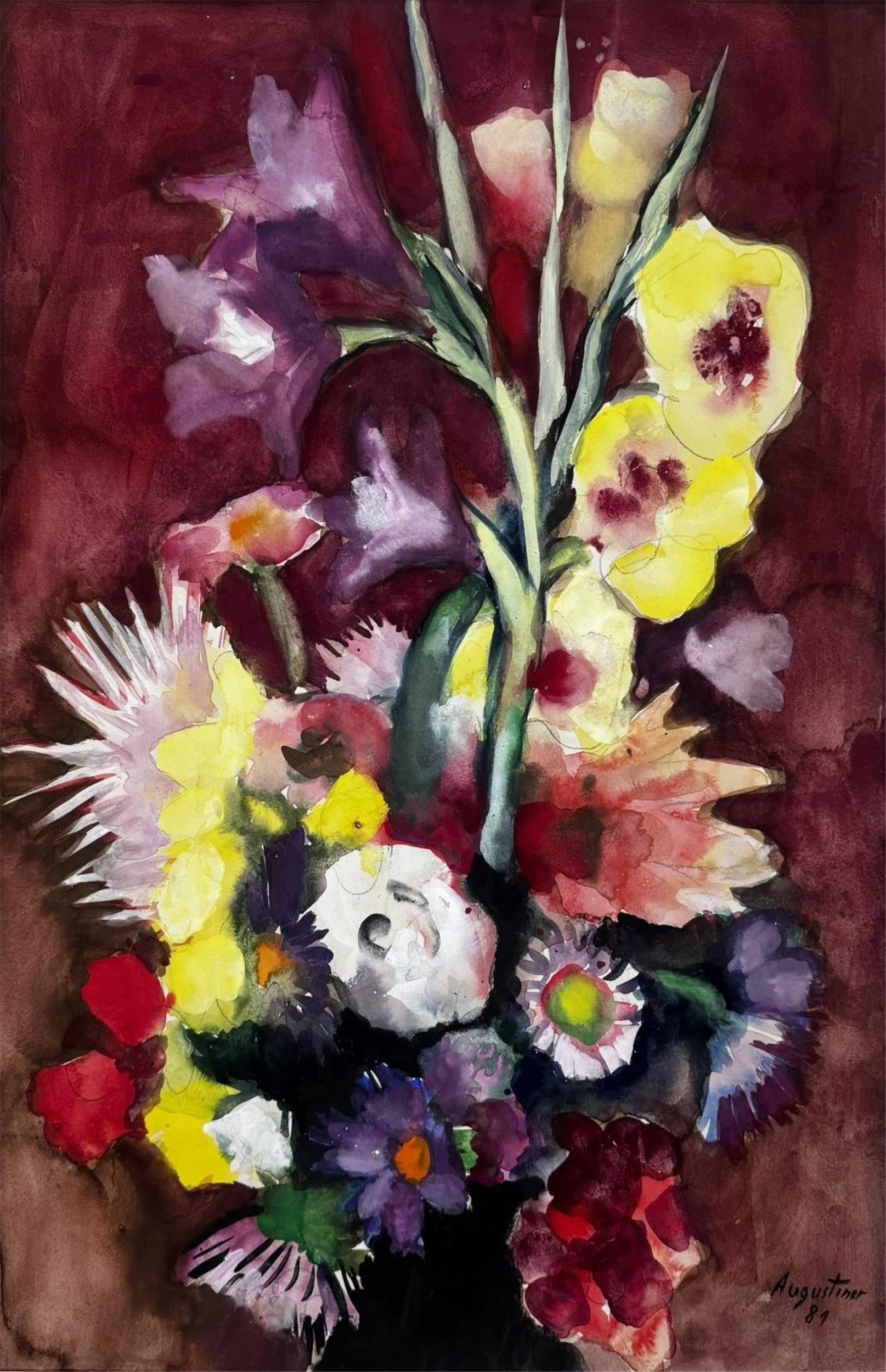 Gouache auf Papier, Sommerblumenstrauß, signiert Werner Augustiner (1922 – 1986), datiert 1981.