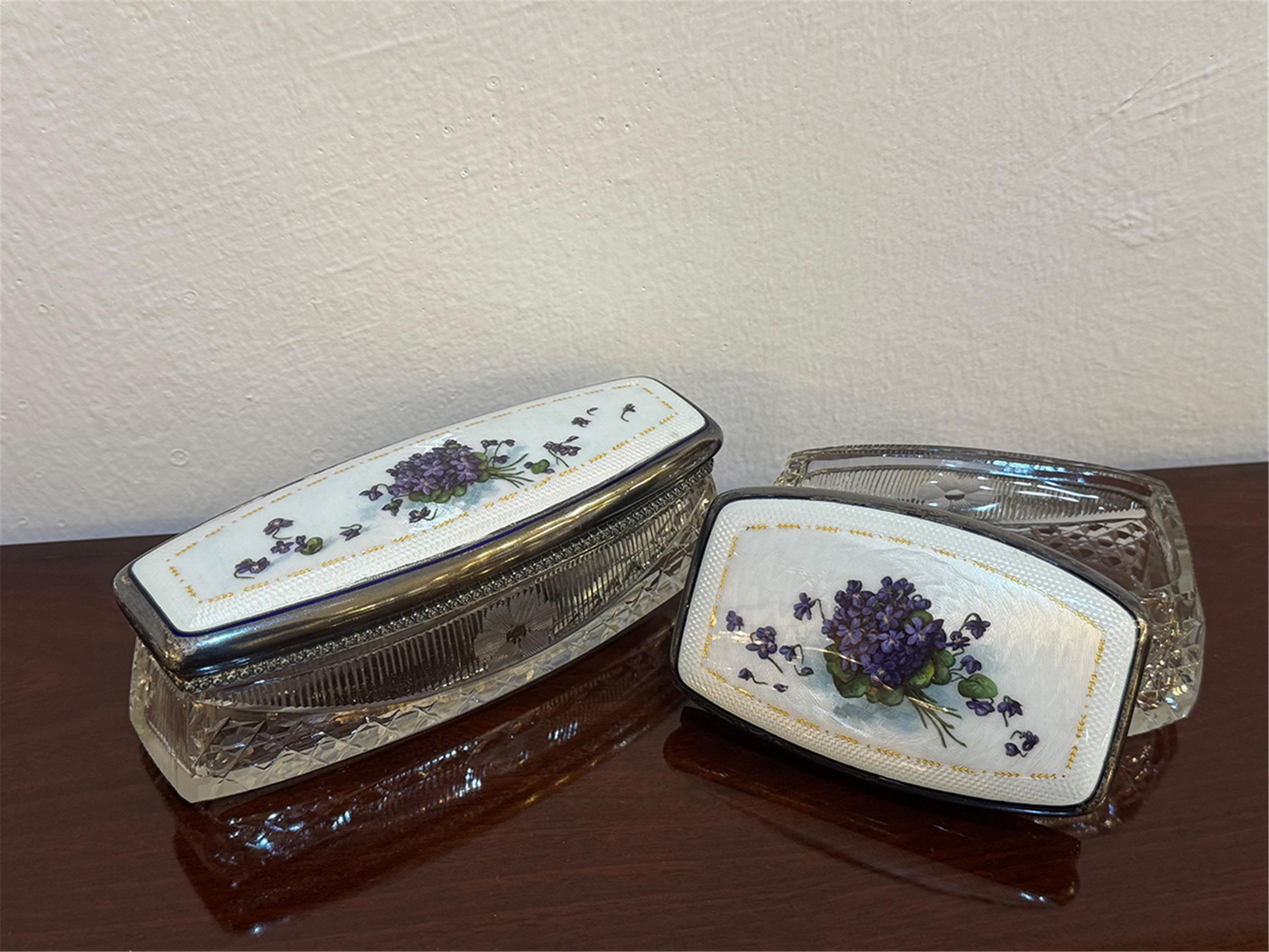 Glas, Silber und Email, Veilchen, punziert Wien, um 1930