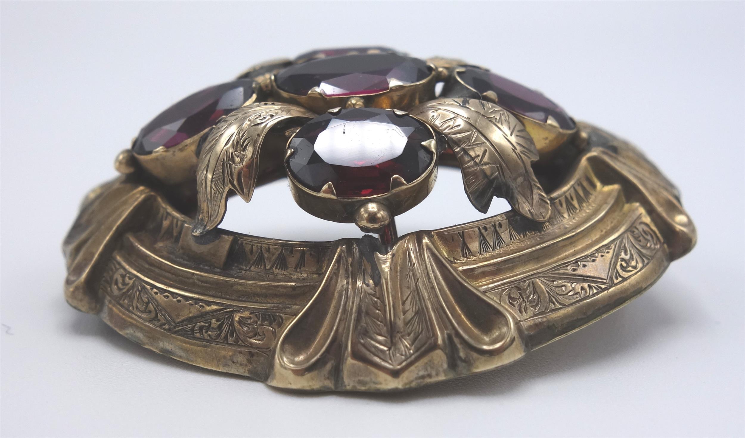 So genanntes Drittelgold, Metall mit 9 ct. Goldgehalt, Steine Almandin, Siebenbürgen, 19.Jh., Gewicht ca. 8,8g