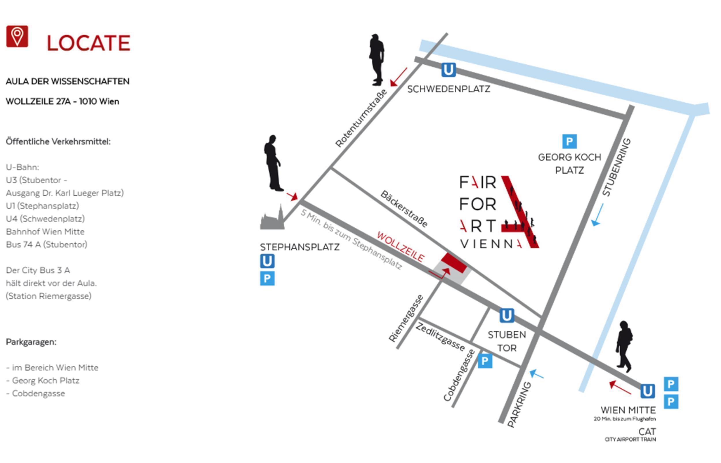 Als perfekten Veranstaltungsort wurde eine nur wenige Schritte vom Stephansdom entfernte Top Location gefunden – die Aula der Wissenschaften. Dieses im 17. Jahrhundert errichtete Gebäude beherbergte ursprünglich die Hörsäle der Universität, das Jesuitentheater, die Wiener Zeitung und die österreichische Staatsdruckerei. Heute bietet die generalsanierte Aula der Wissenschaften eine fast 3.000 m² große Ausstellungsfläche, die mit ihren Säulen und Gewölben in Kombination mit transparenten Glasflächen für diese innovative Kunstmesse ideal ist.