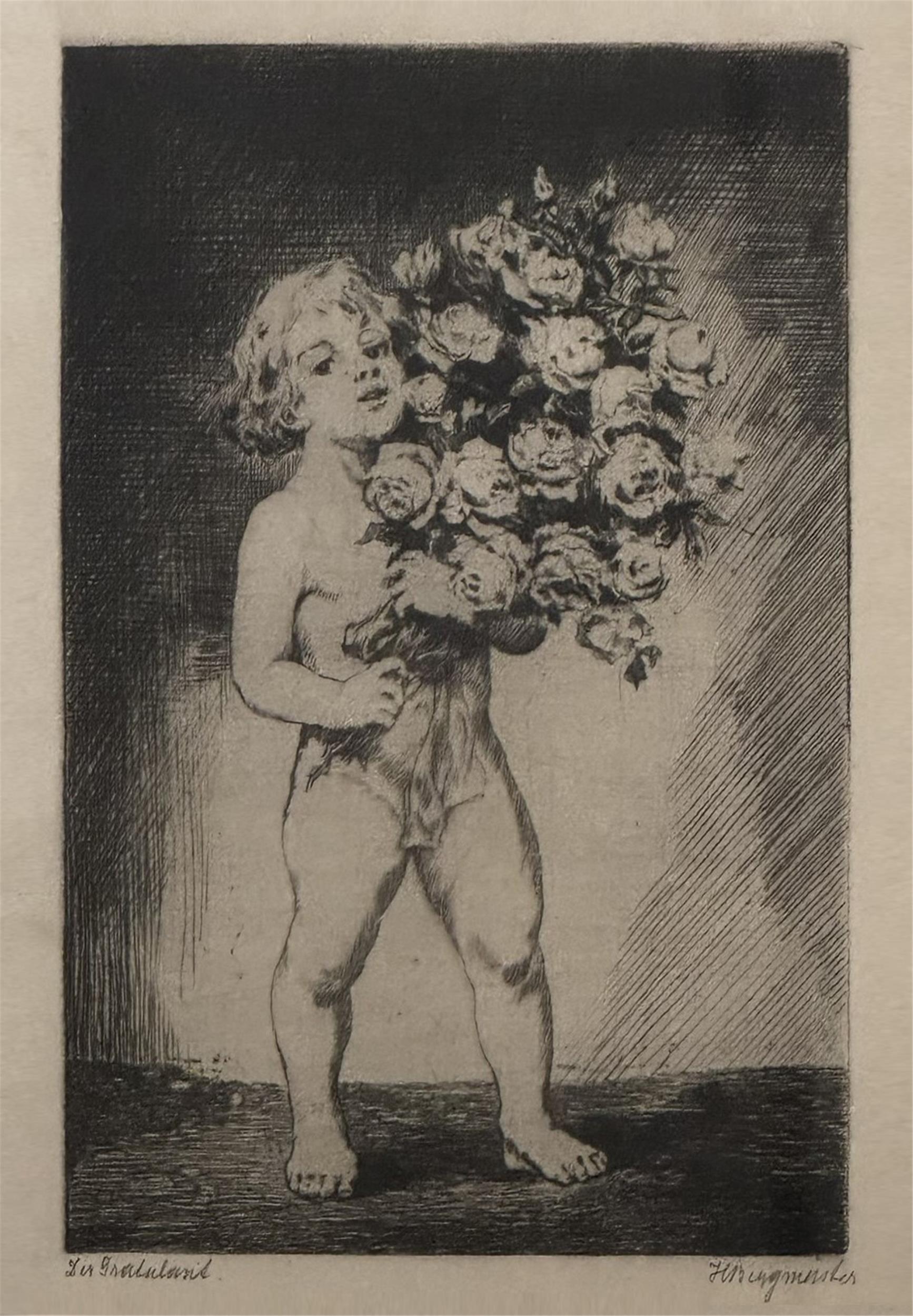 Radierung auf Papier, bezeichnet „Der Gratulant“, signiert Hermann Bergmeister (1869 – 1938).