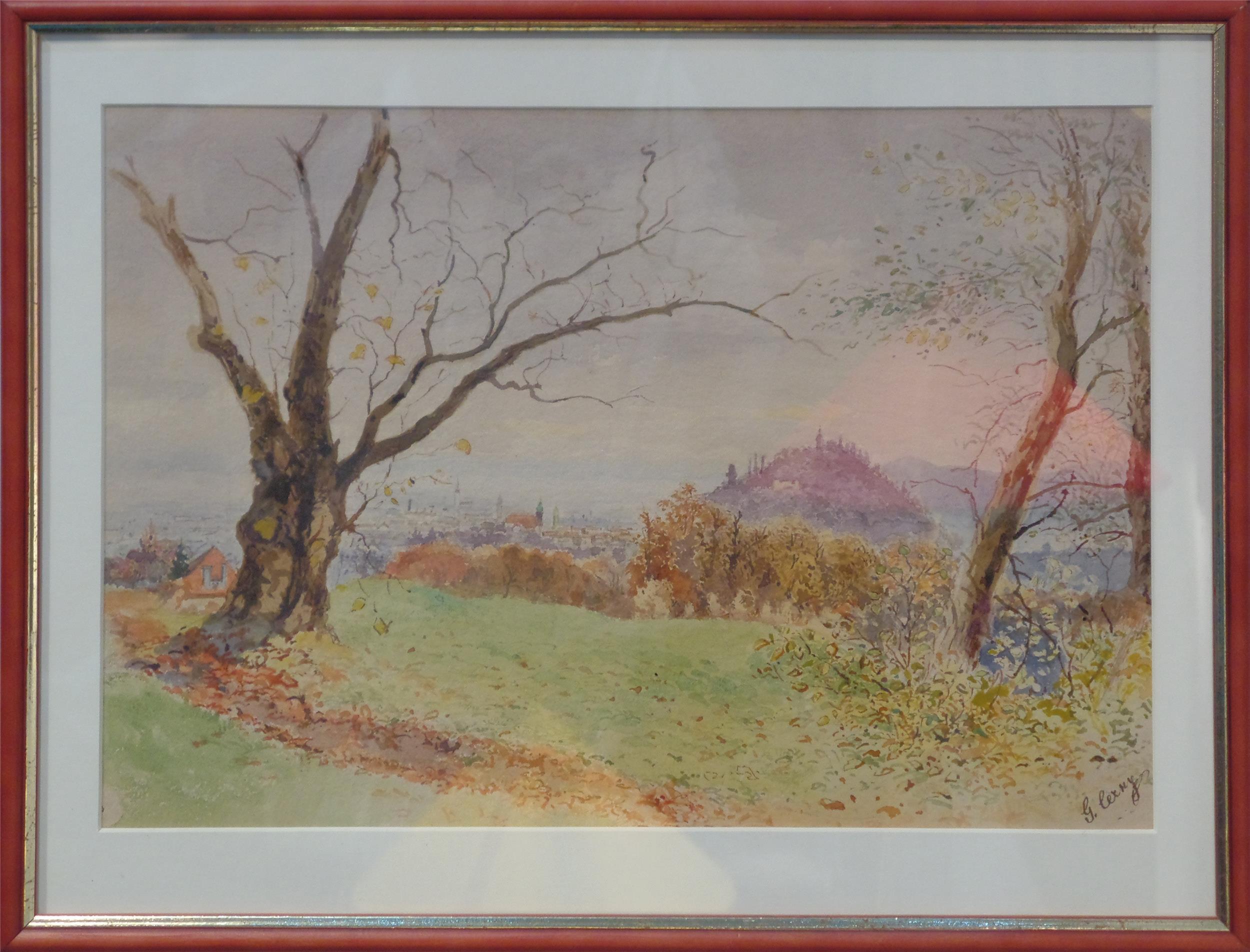 Sehr schöne Stadtansicht vom Rosenhain aus gesehen, Aquarell auf Papier, gerahmt, signiert G. Czerny, guter Zustand.