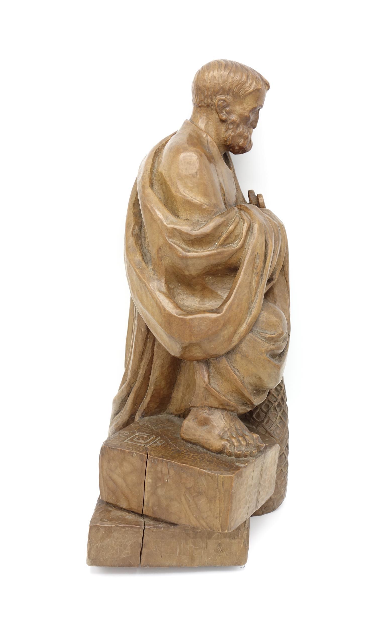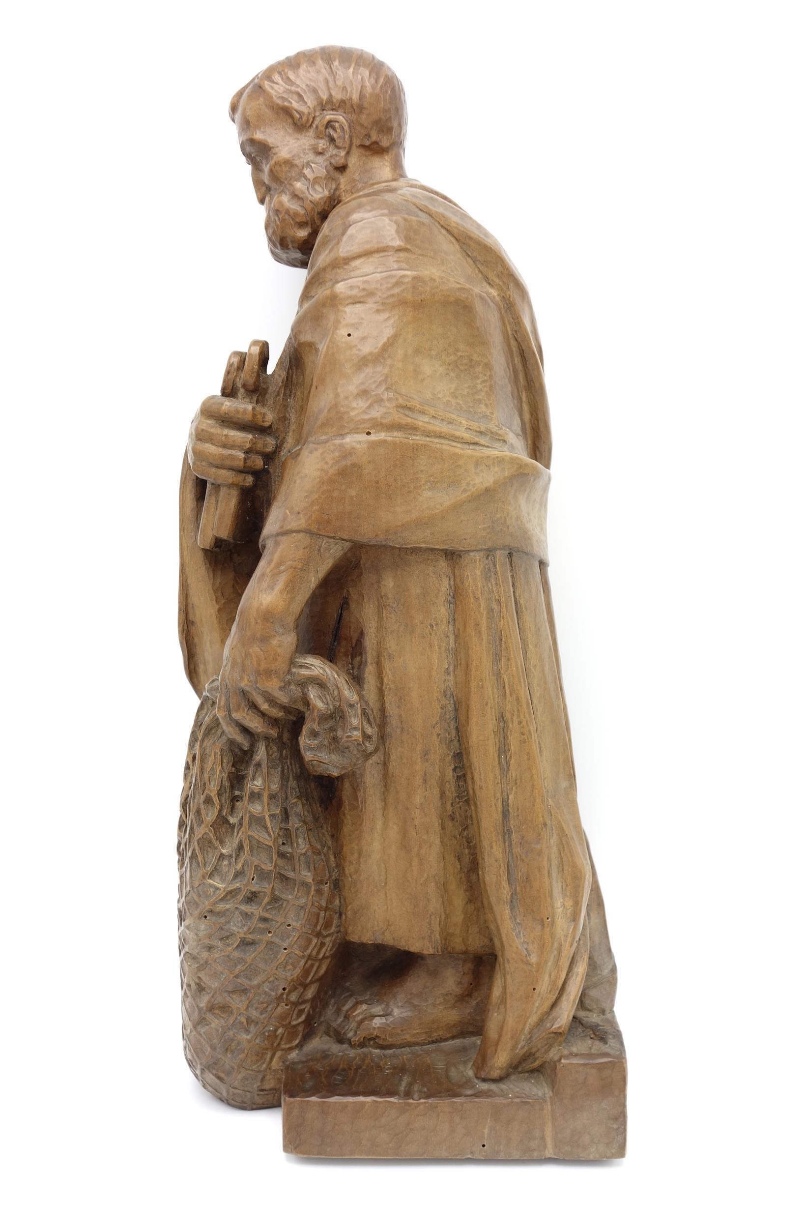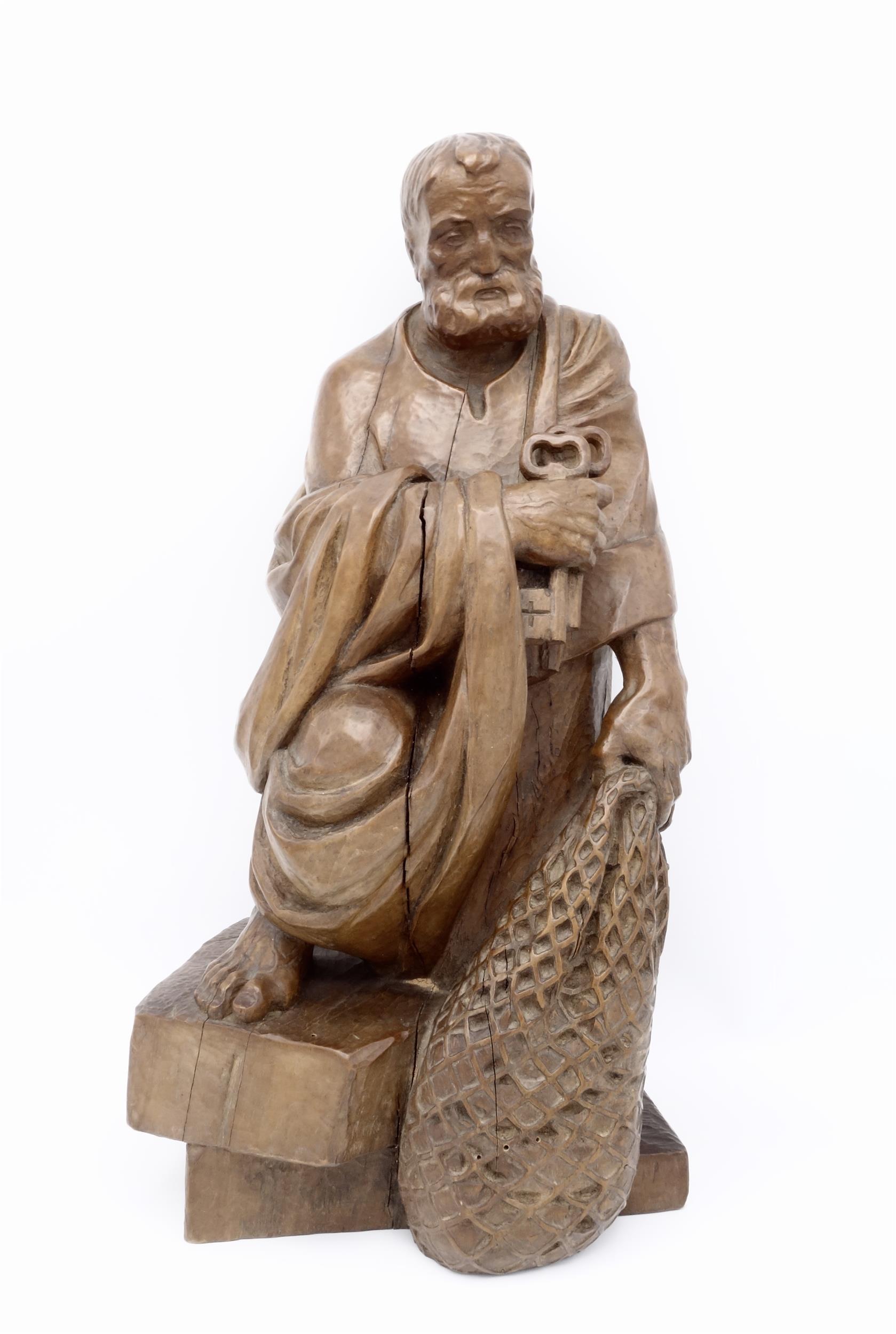 Heiliger Petrus, Holzskulptur, Monogramm FJU, 1929, Schwundrisse