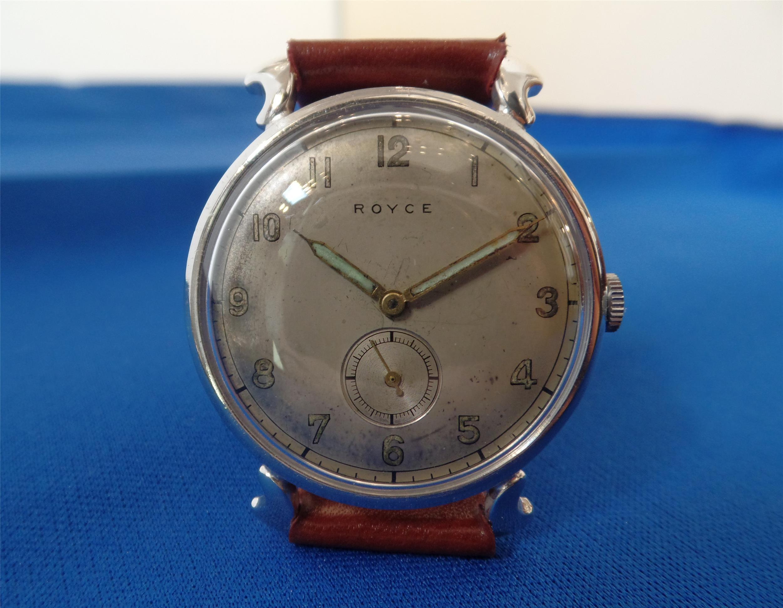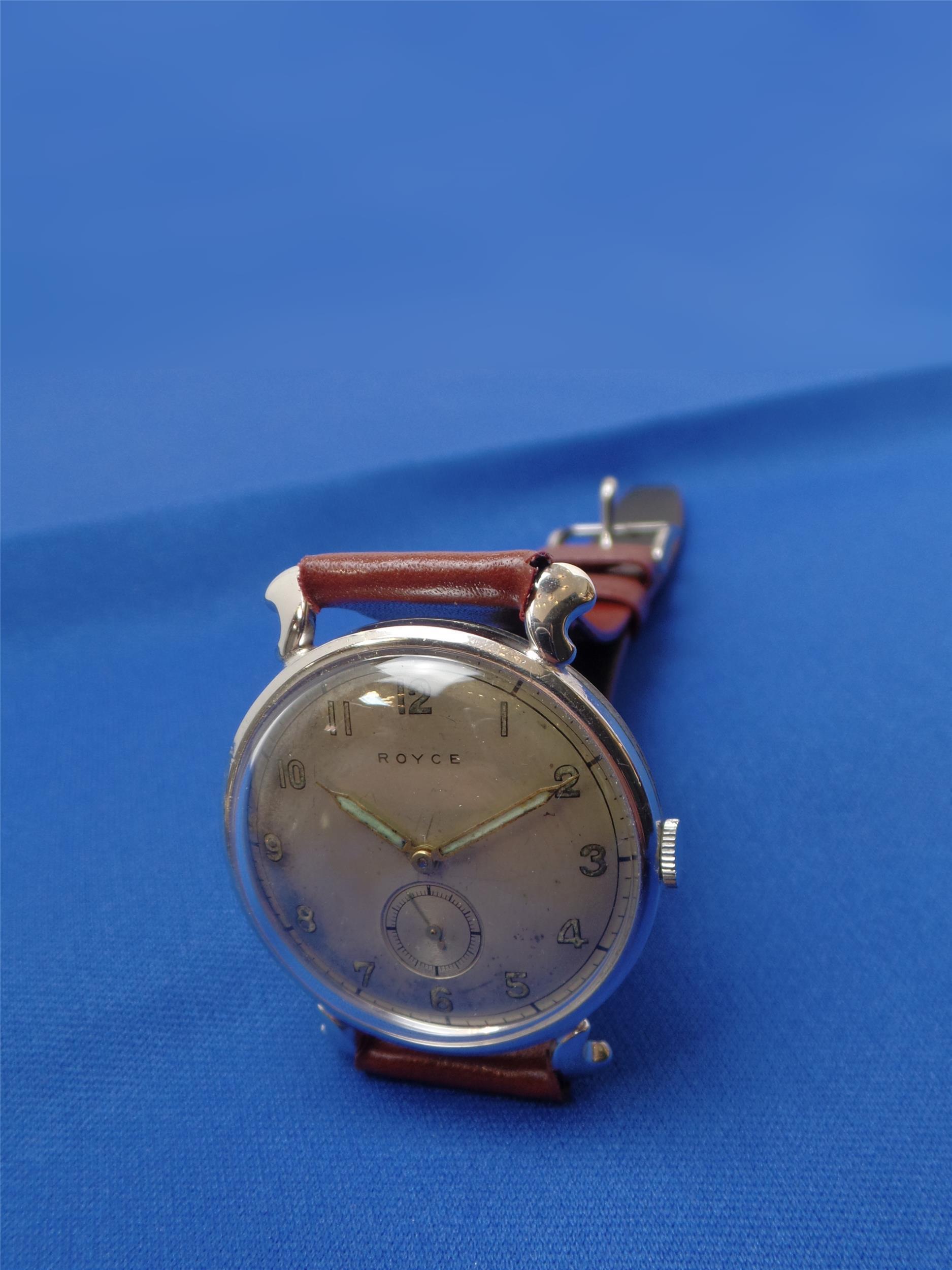 Herrenarmbanduhr Royce, 1950-er Jahre, gehfähig, Werk überholt, Band Leder, erneuert.
