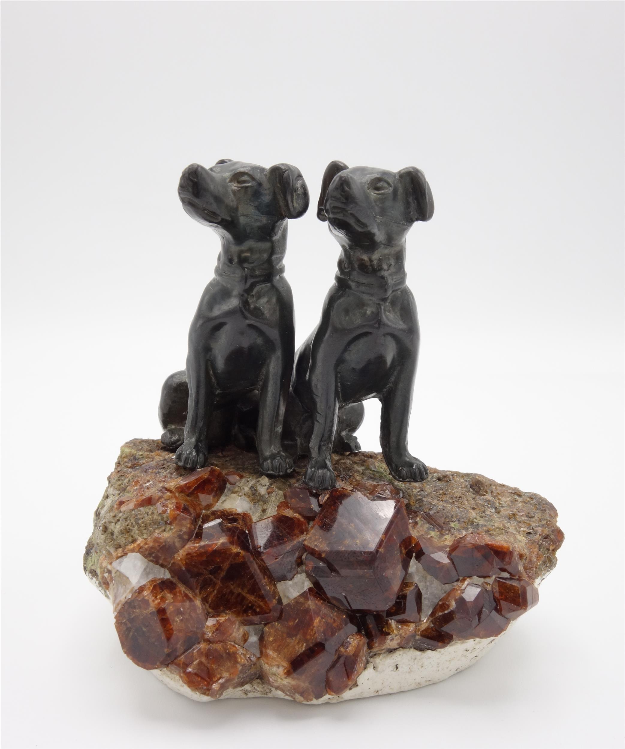 Hundepaar aus Bronze auf Granatsockel, wohl Wiener Bronze, 20. Jahrhundert.