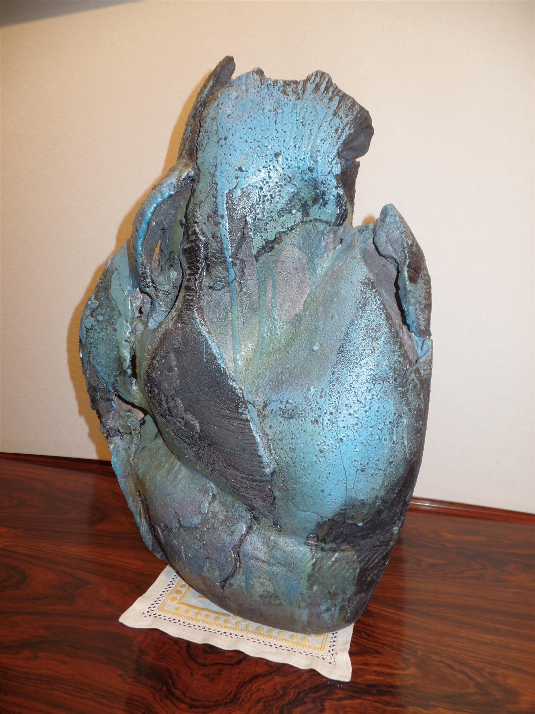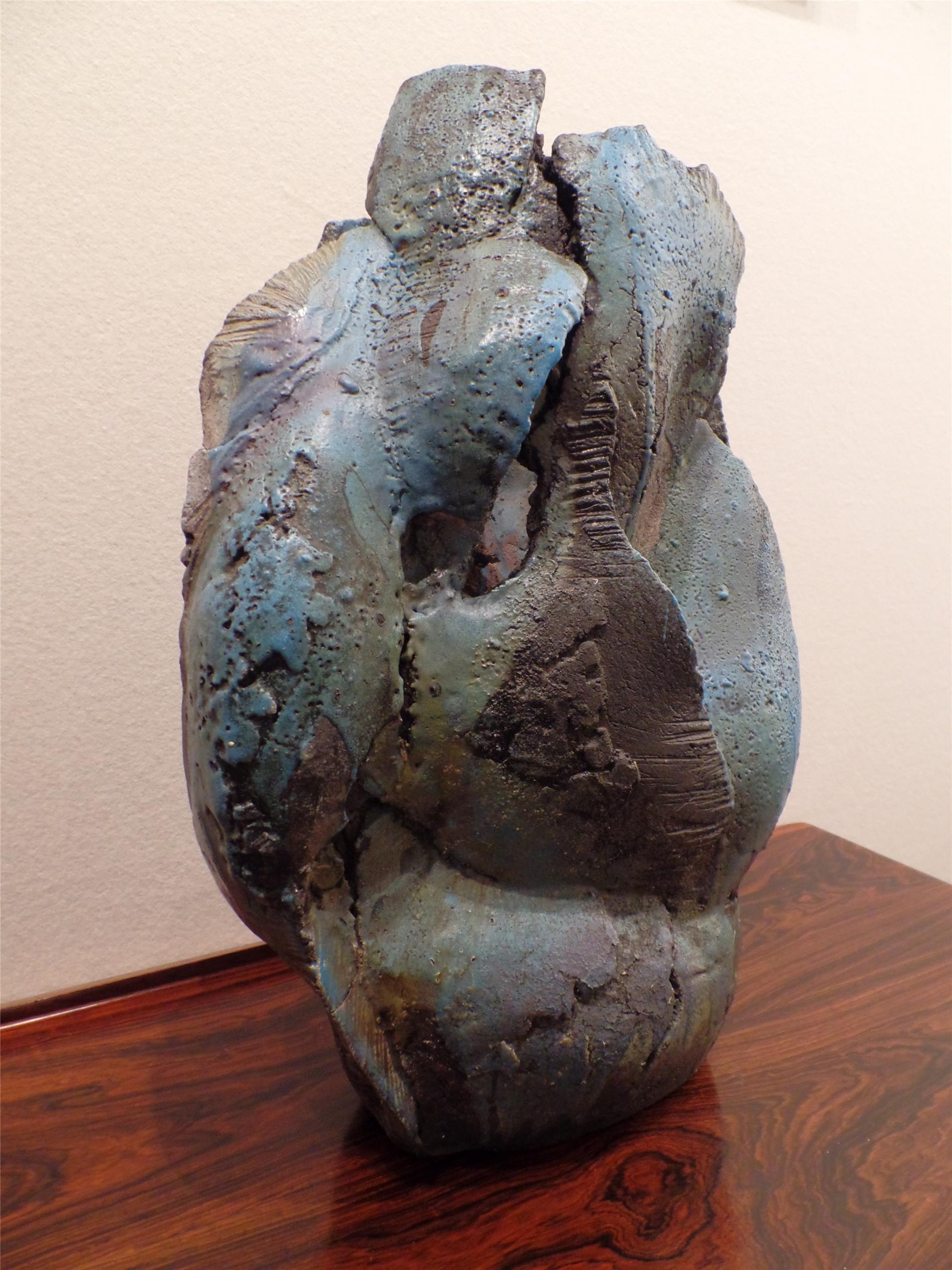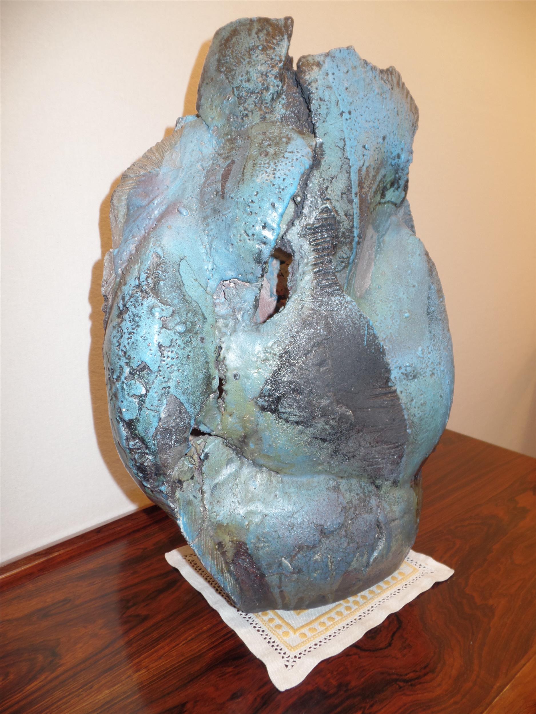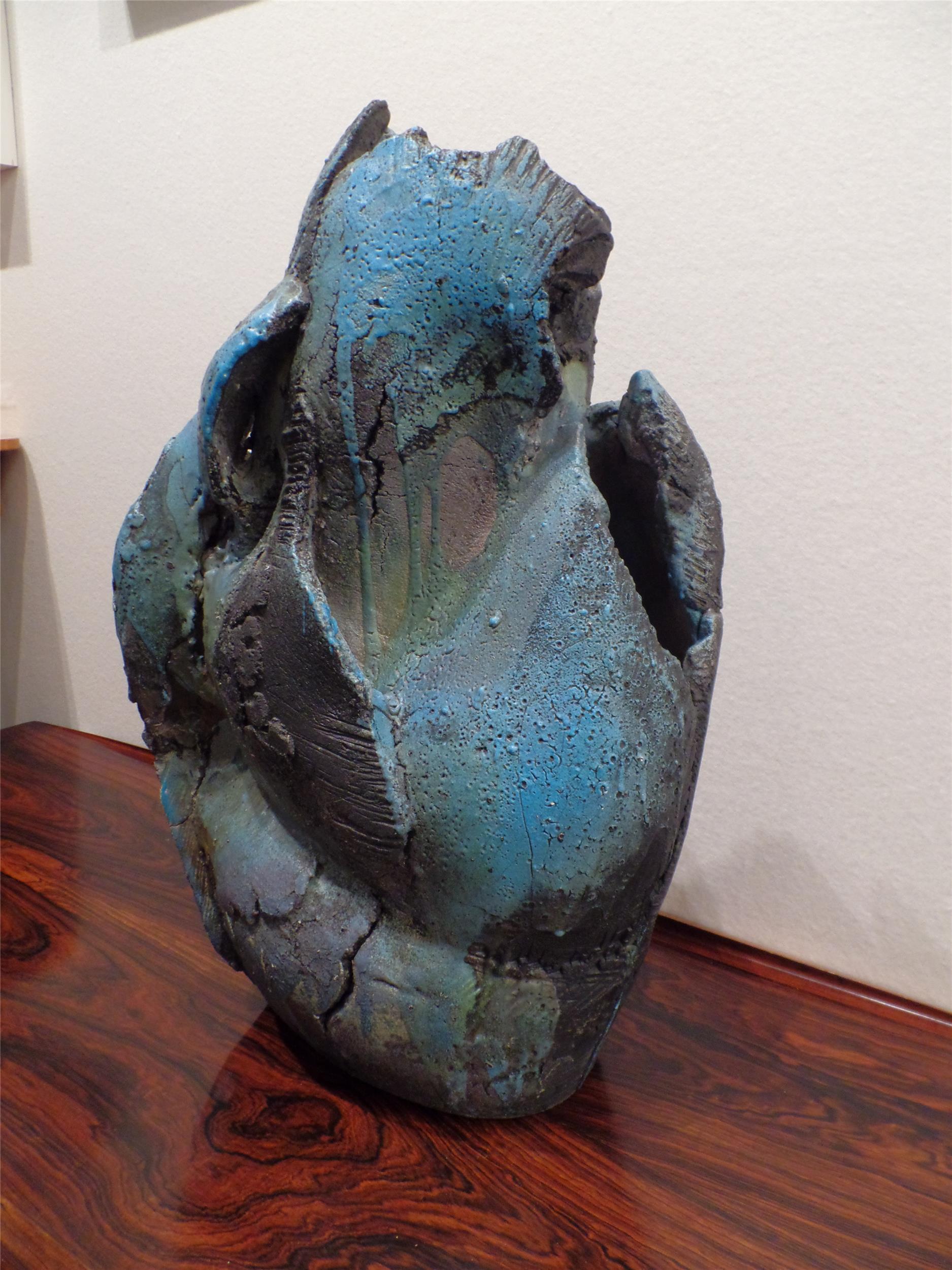 Keramikobjekt aus gebranntem Ton, Ende 20. Jahrhundert, vegetabile Formensprache, farbig glasiert, vielfach durchbrochen, ohne erkennbare Signatur.