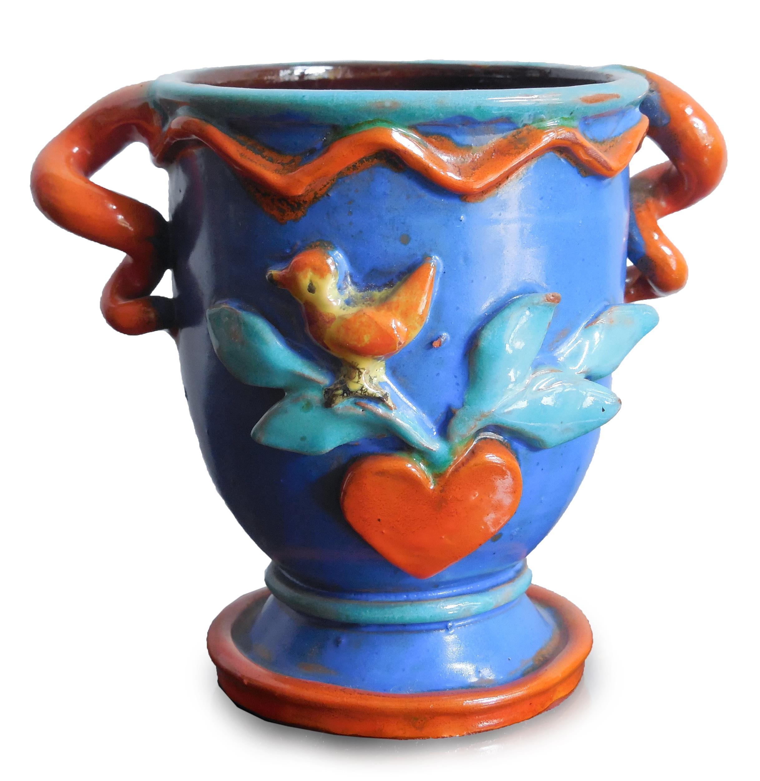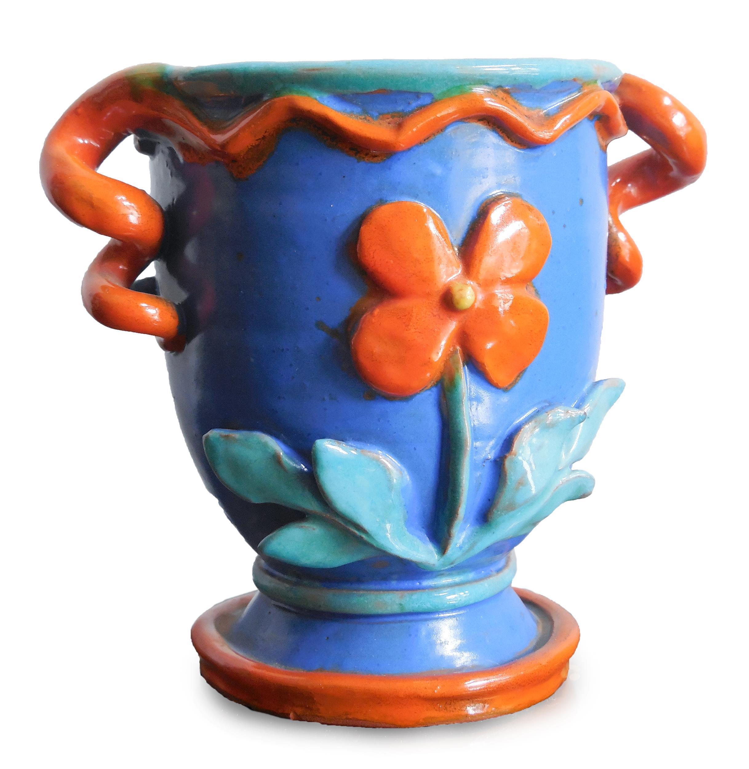 Kleine Keramikvase, roter Scherben, farbig glasiert, am Boden Modellnummer 40081 eingepresst, Wien 1930-er Jahre, Bosse zugeschrieben.