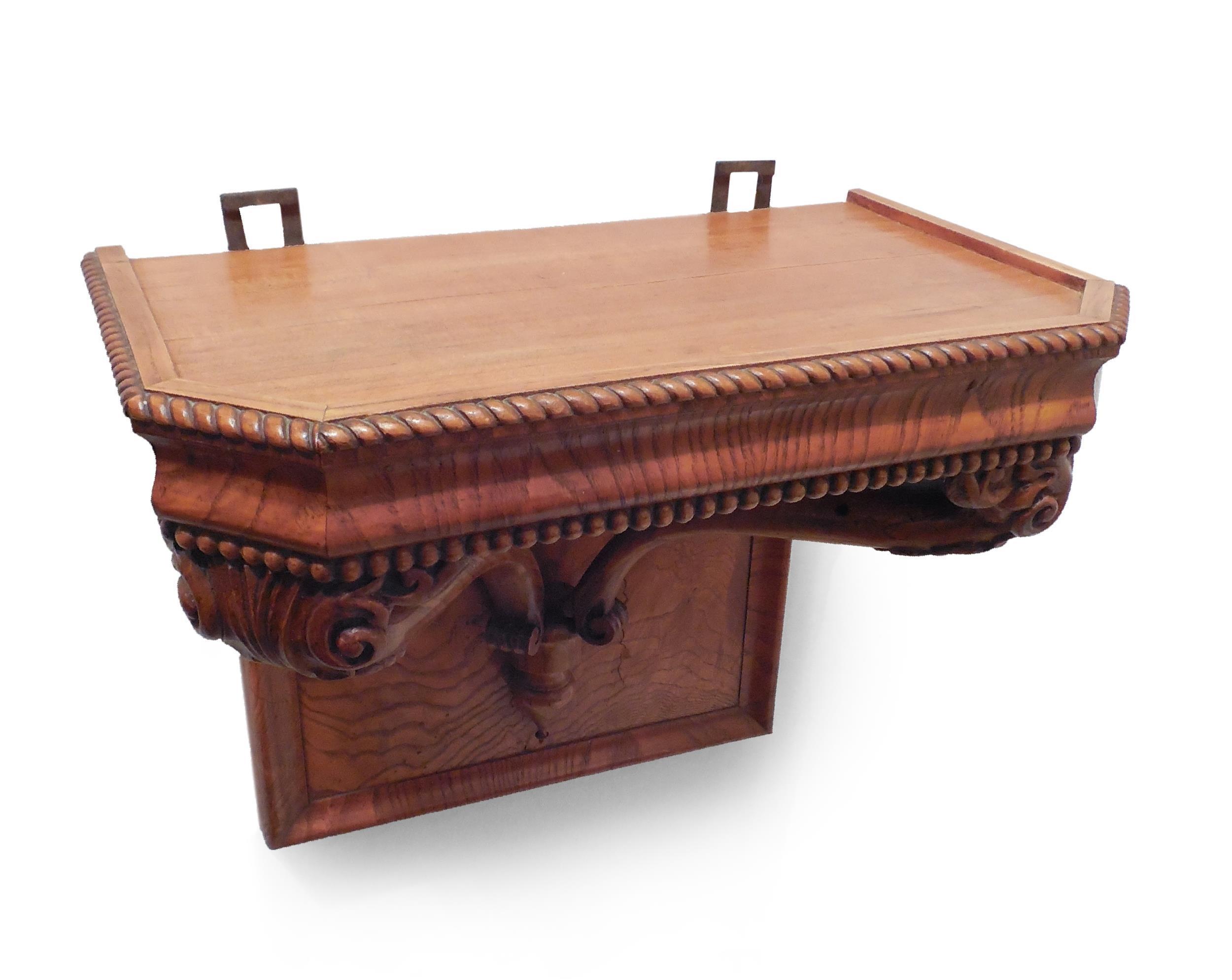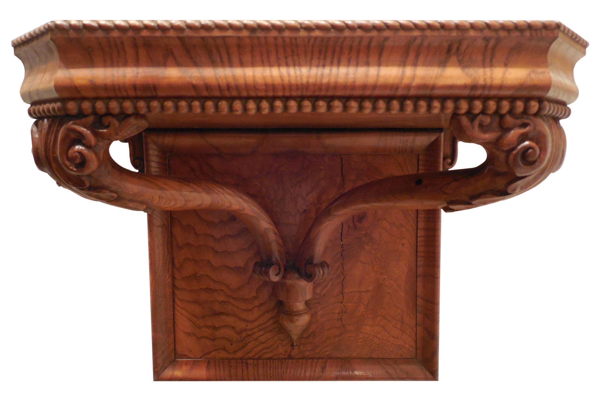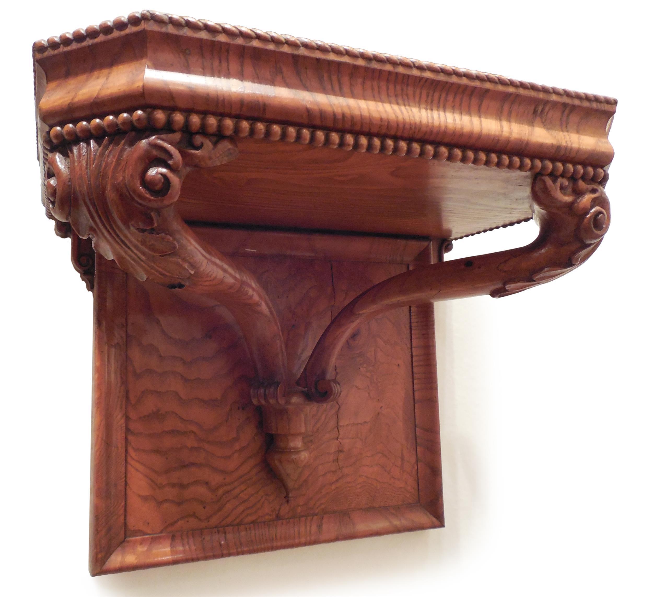 Konsole, Eschenholz massiv und furniert, Süd- oder Mitteldeutschland, 1835-45, Schellack-handpoliert, außergewöhnlich reich verziert, sehr stabil, auch für massive Objekte geeignet.