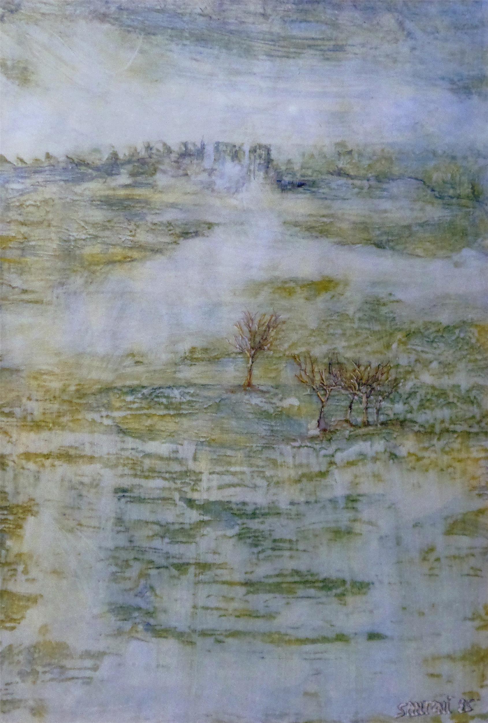 Mischtechnik auf Papier, signiert, gerahmt. Originalwerk des steirischen Malers Siegfried Santoni (geb. 1955 in Leoben).