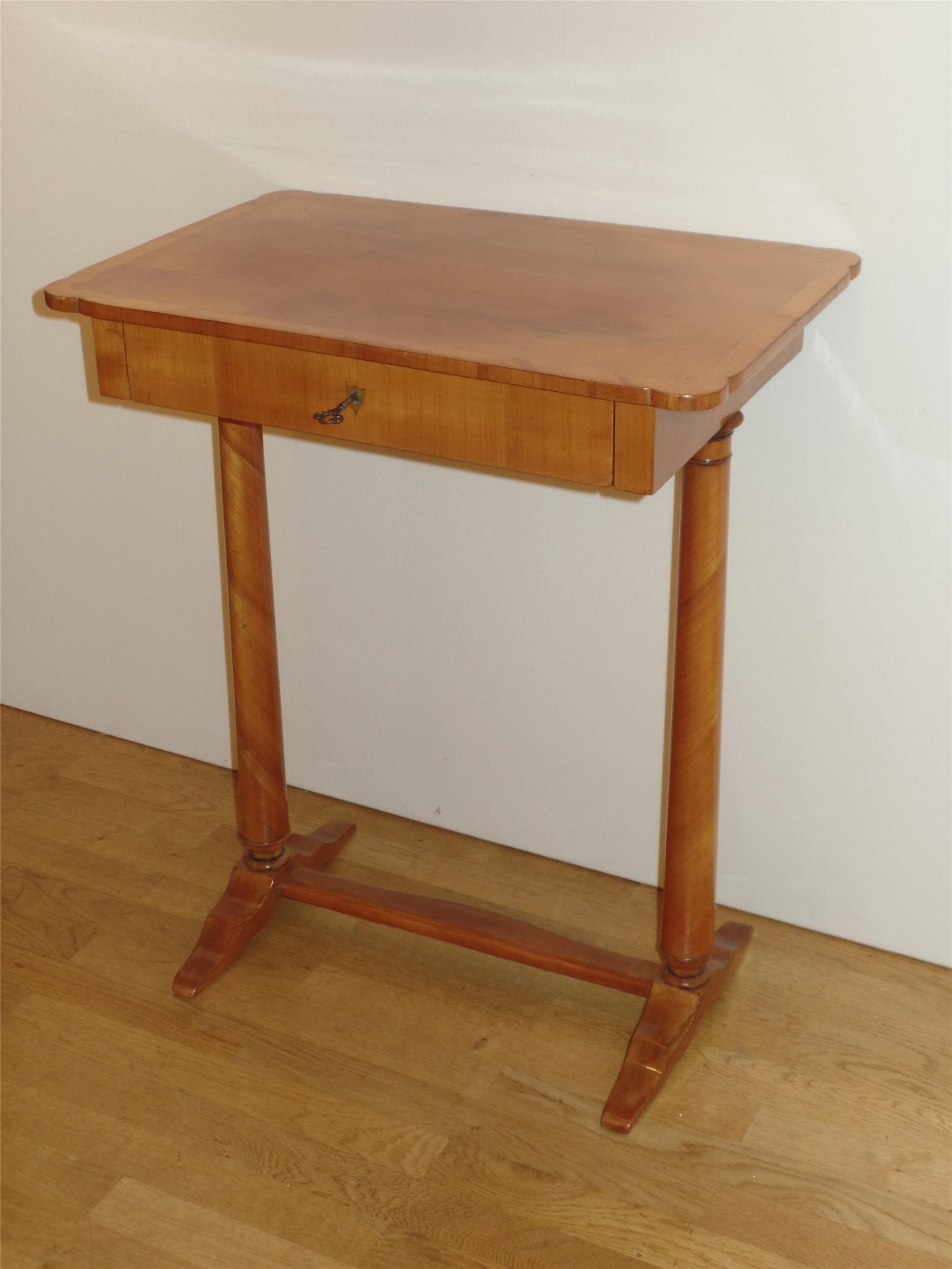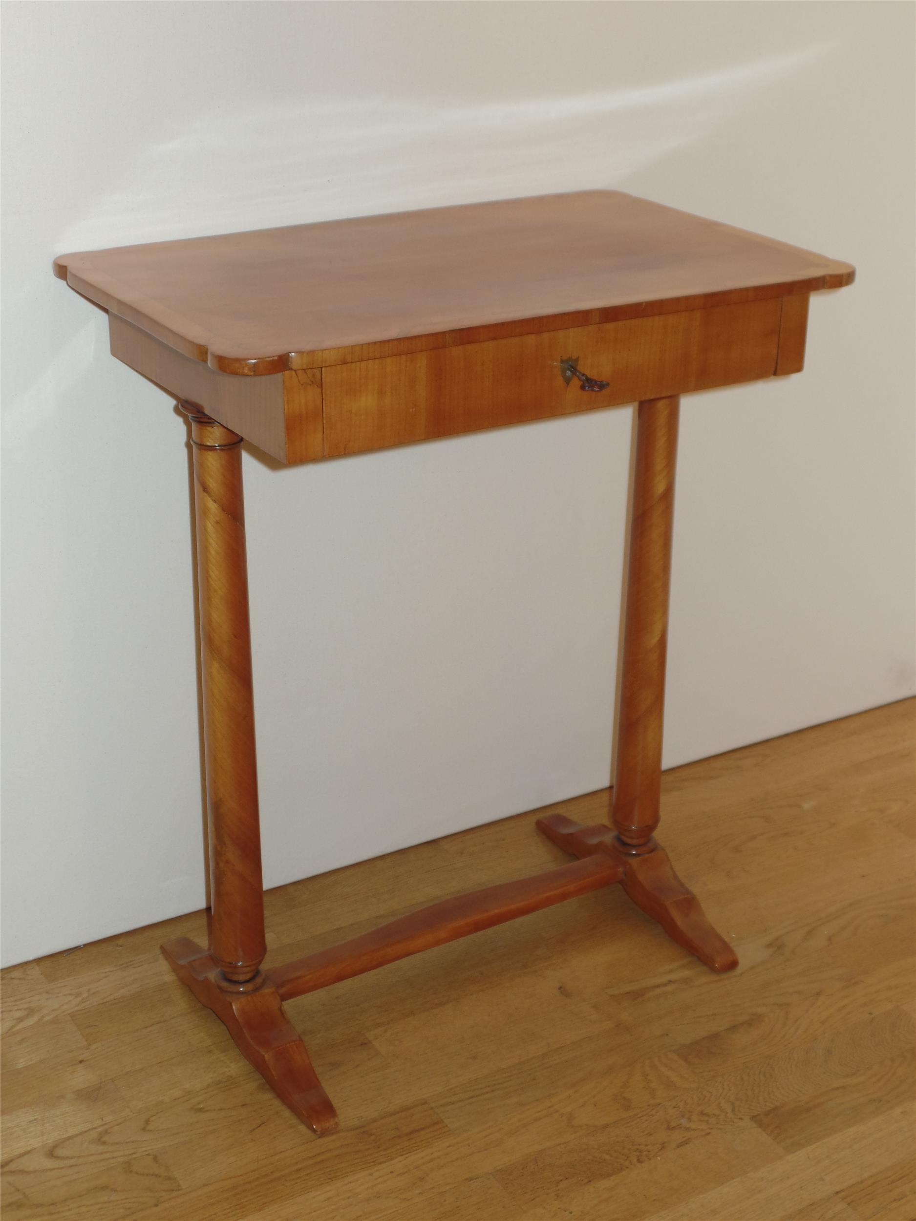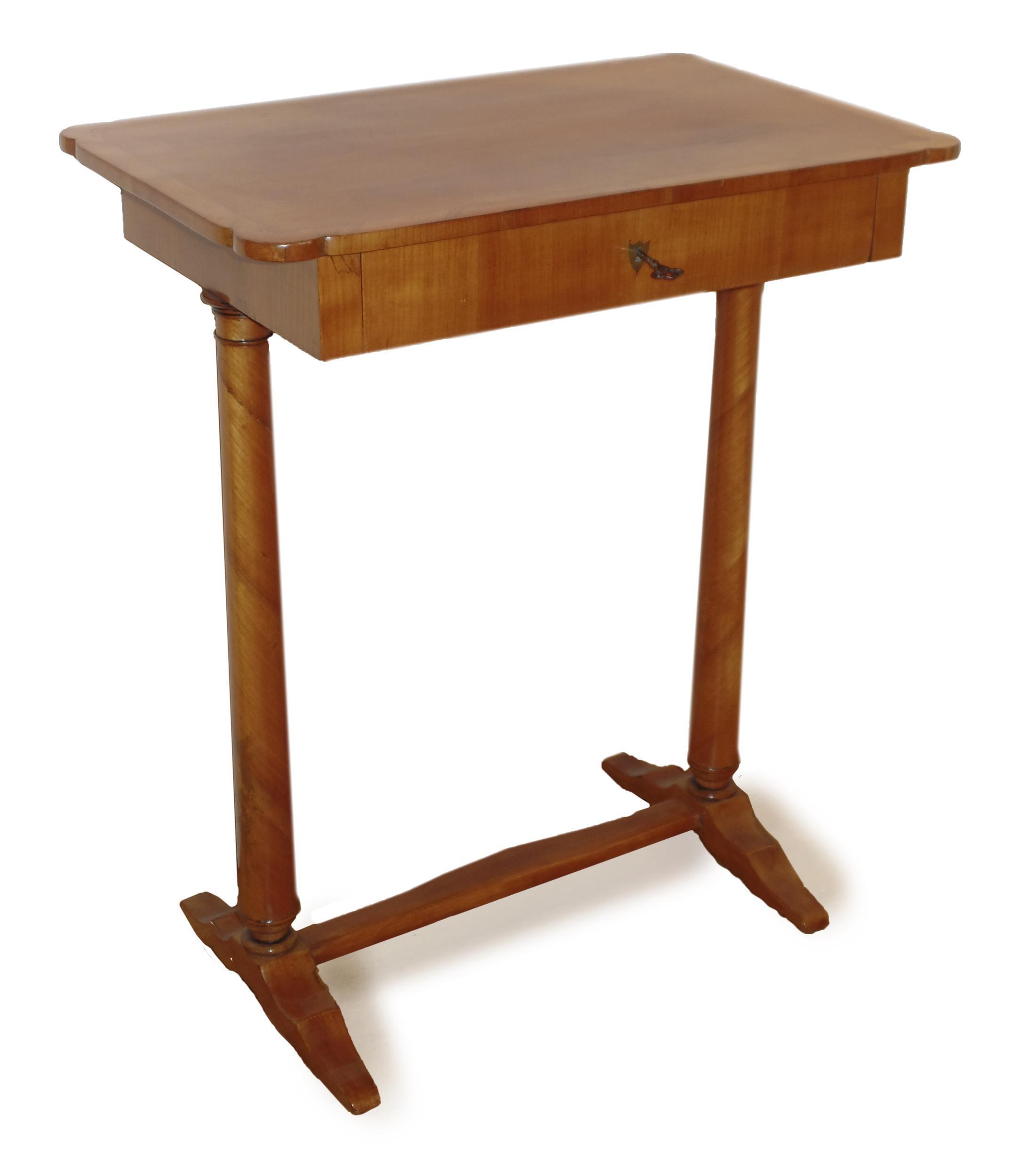 Nähtisch, Biedermeier, zweites Viertel 19. Jahrhundert, Kirsche auf Nadelholz furniert, die Beine "gewickelt", restauriert, dem Innsbrucker Hoftischler Johann Nepomuk Geyer (Innsbruck 1807 - 1874) zugeschrieben. Preis ab Geschäftslokal.