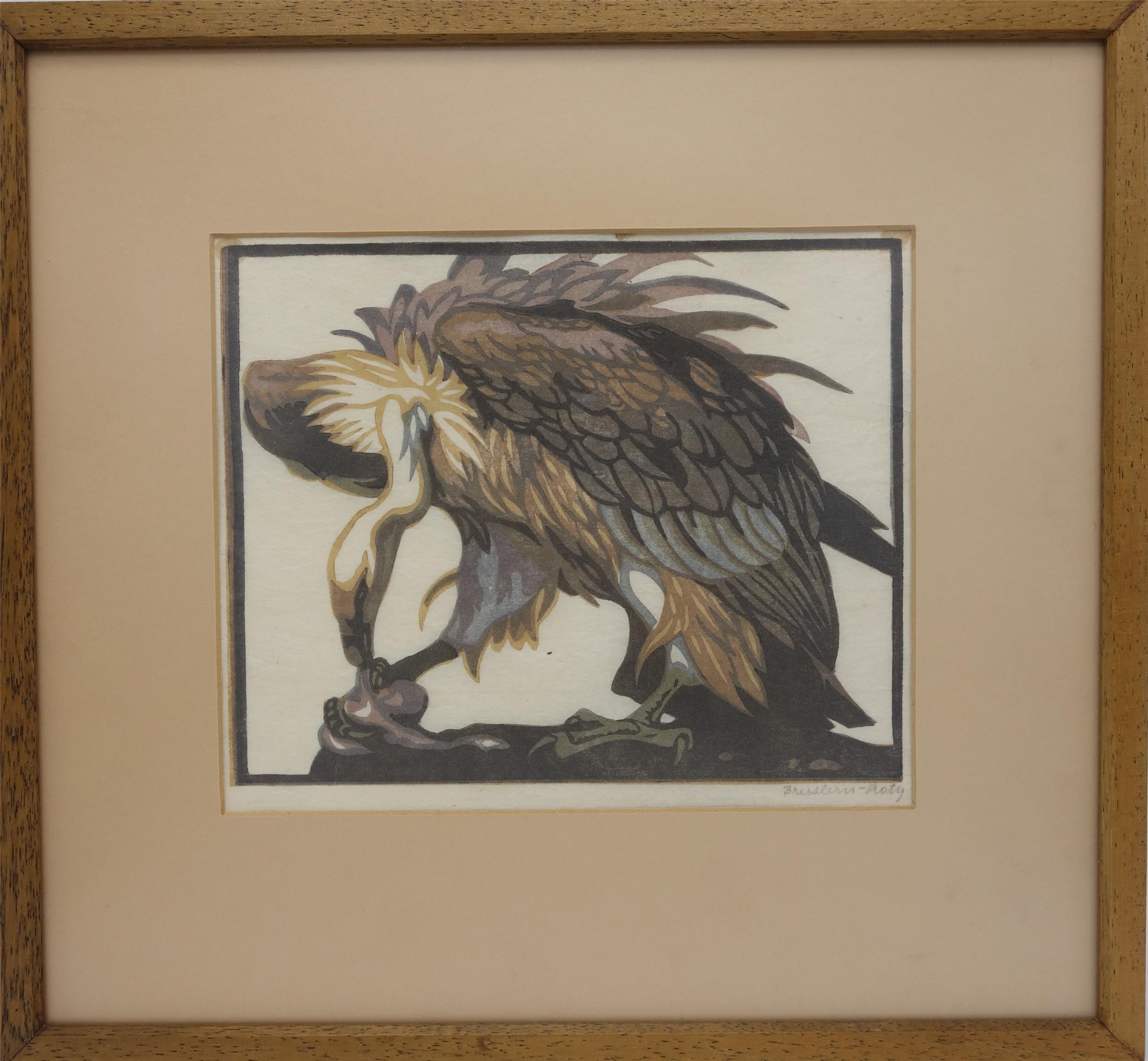 Norbertine Bresslern-Roth (1891 - 1972), Weißkopfgeier, Farblinolschnitt auf Papier, 1922, rechts unten signiert.