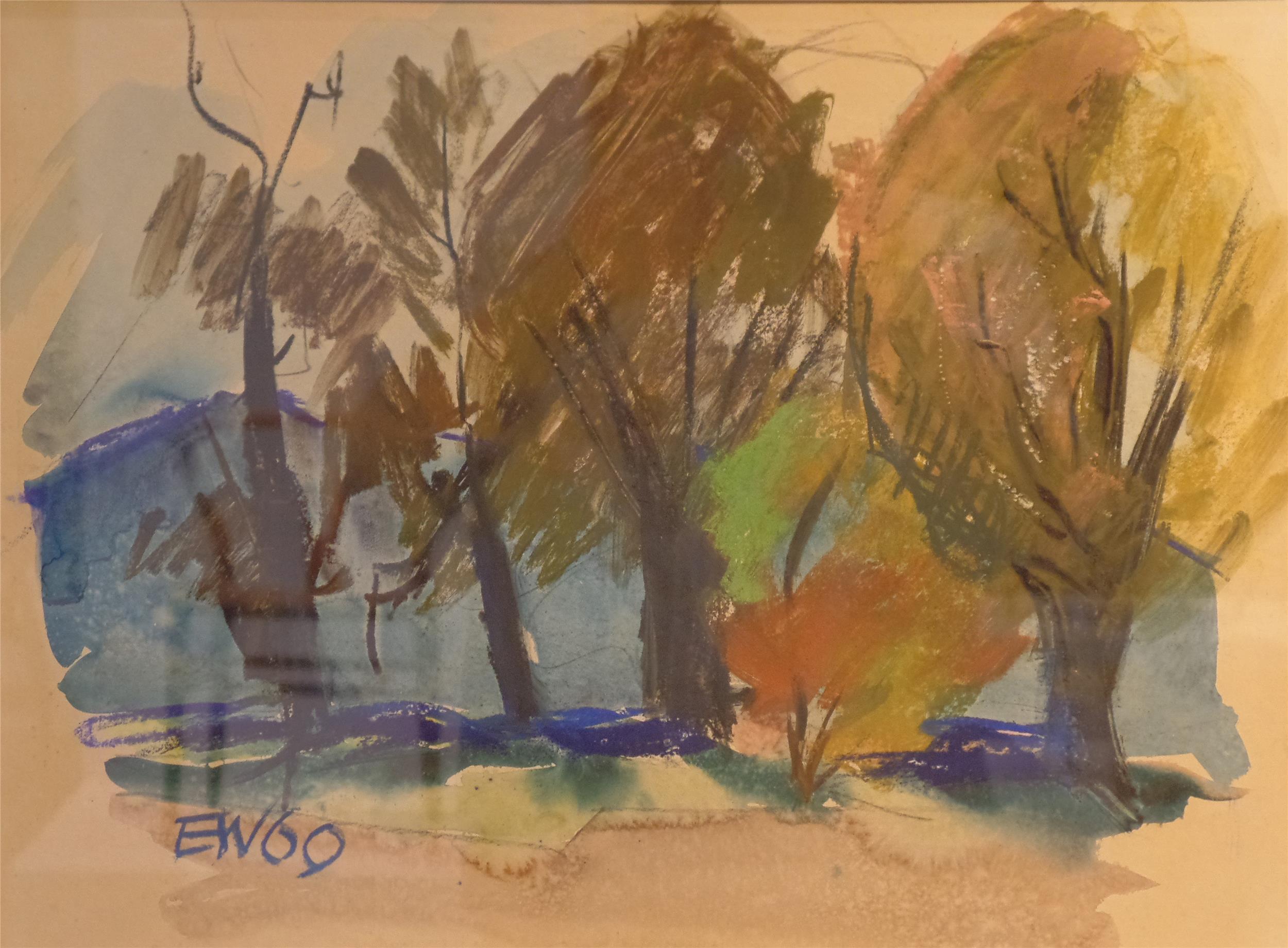Parklandschaft, Tempera auf Karton, monogrammiert EW für Ernst Windisch (geb. 1947 in Graz), datiert 1969, gerahmt.