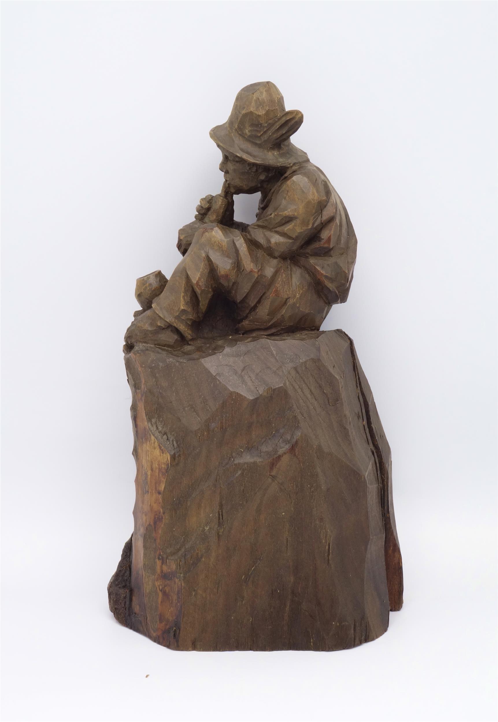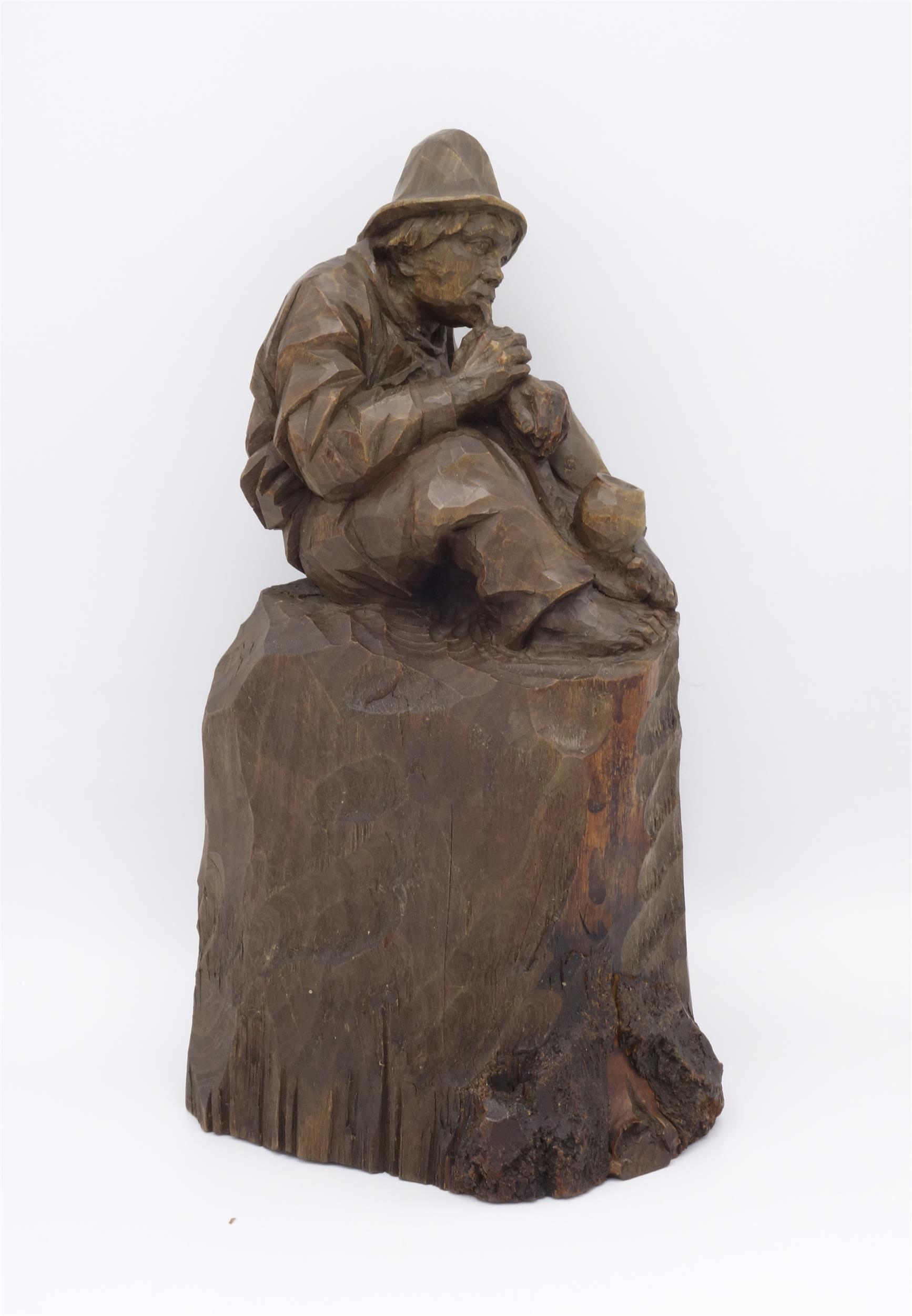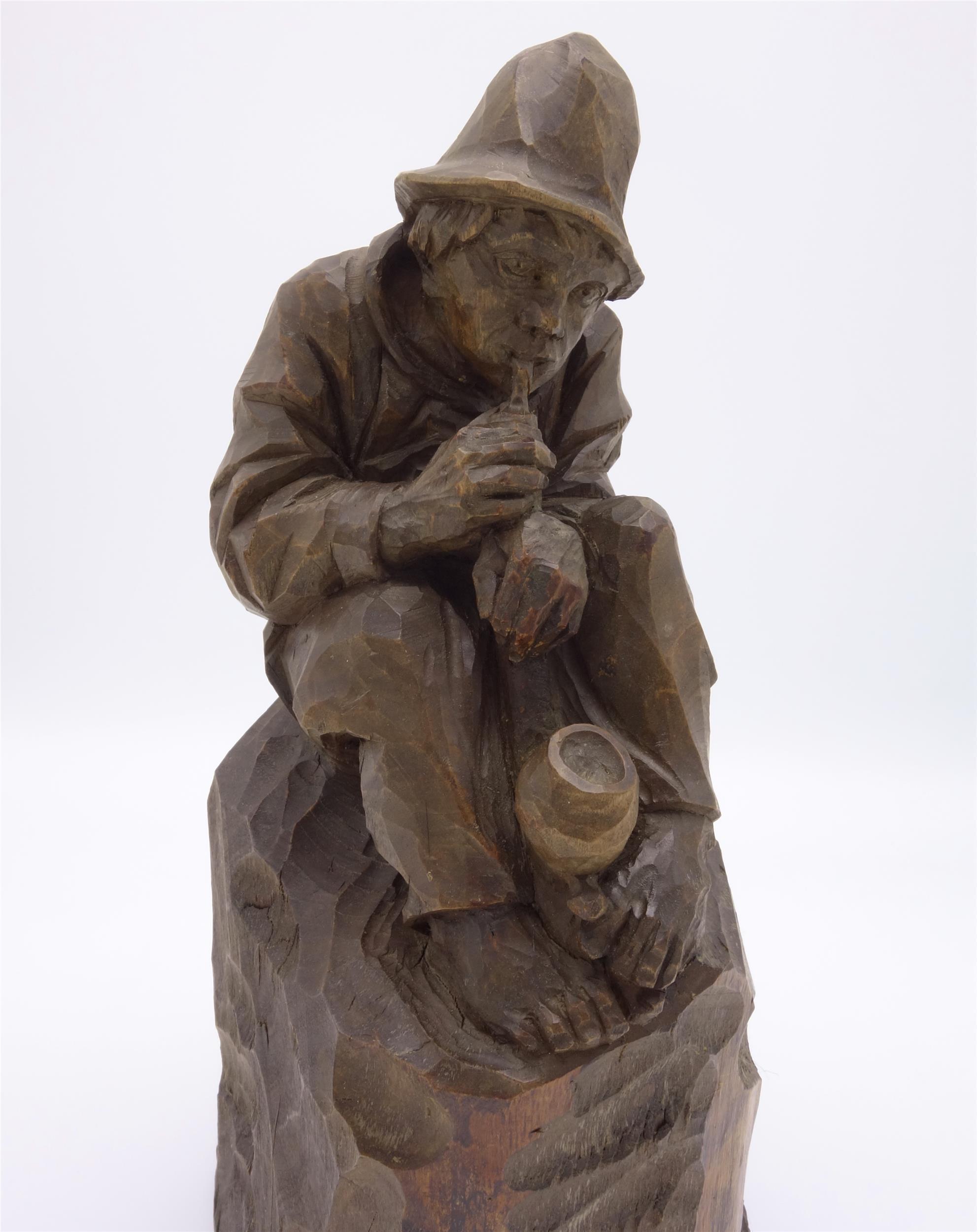 Pfeifenraucher, Holzskulptur, 1.Hälfte 20.Jh.