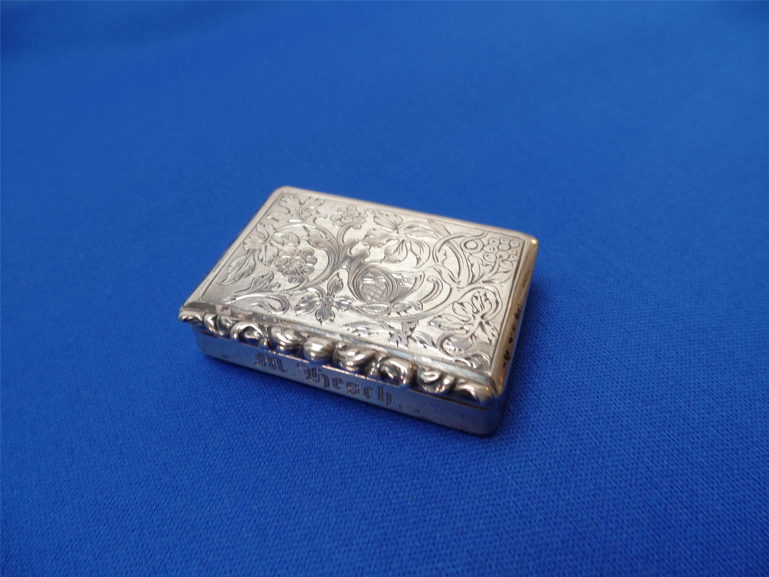 Pillendose, Wiener Radpunze 1830-er Jahre, sehr gut ziseliertes Silber mit originaler Innenvergoldung, Gravur in der Front "m. Hesch".