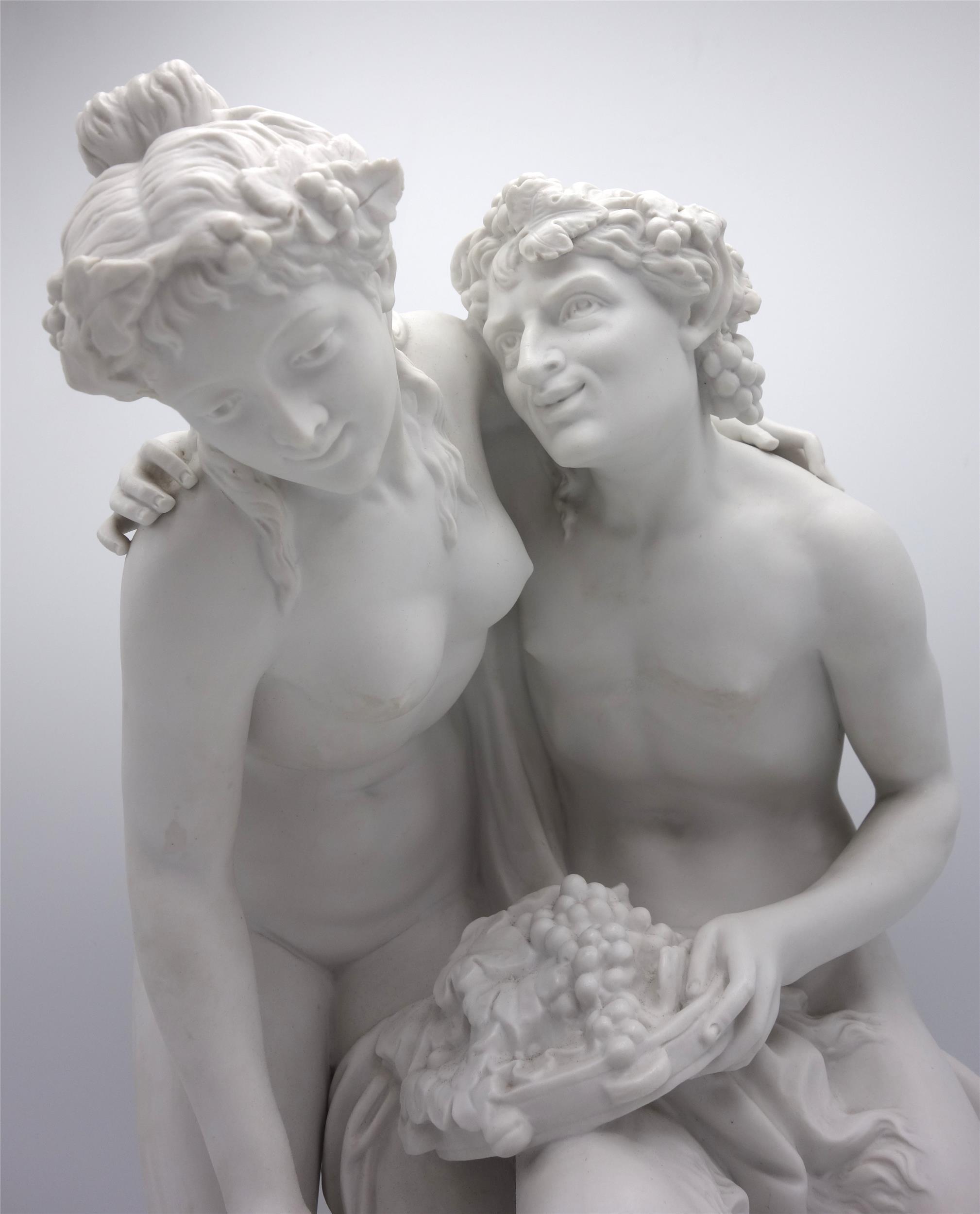 Porzellangruppe Pan und Nymphe, Bisquitporzellan (unglasiert), Passau Anfang 20.Jh.