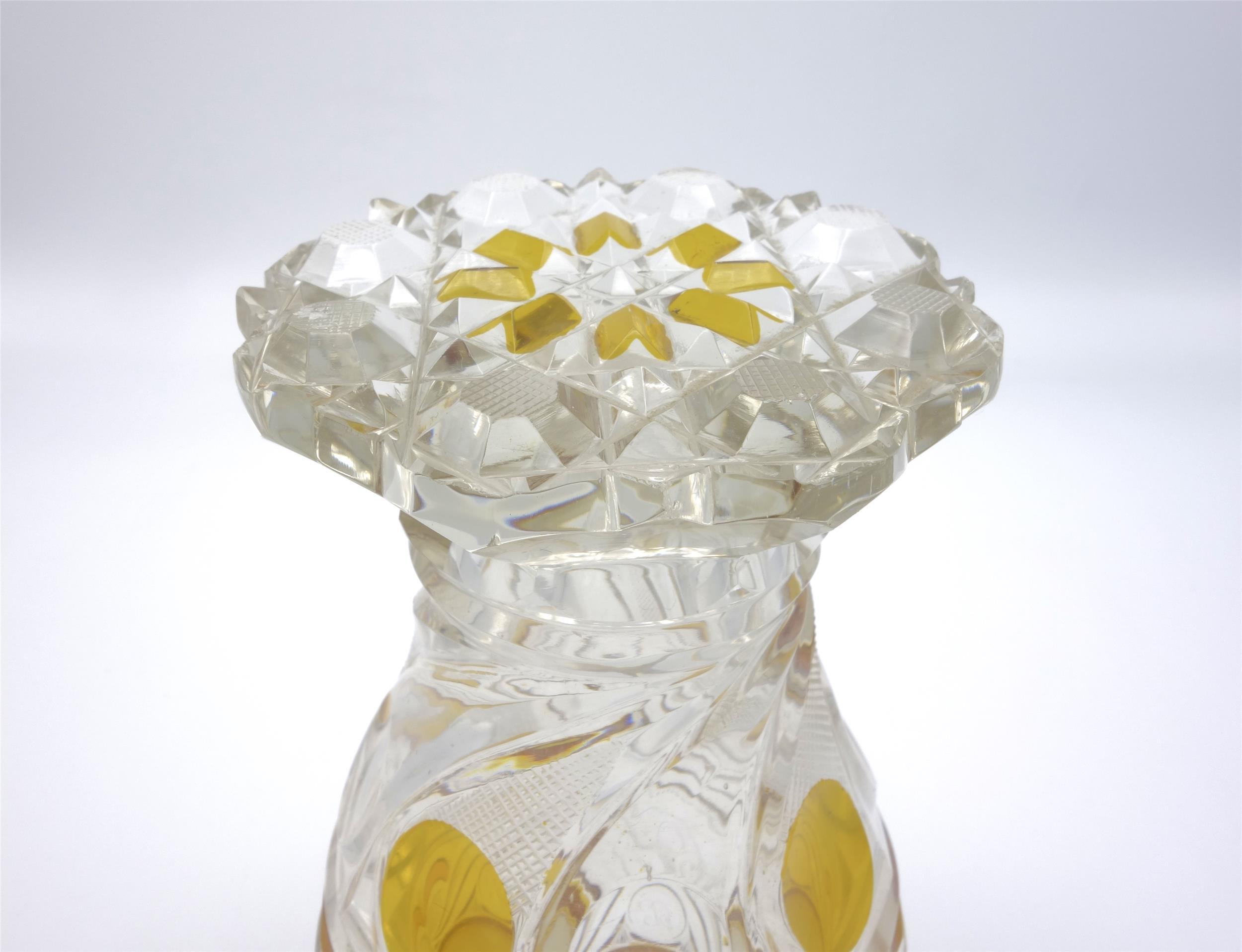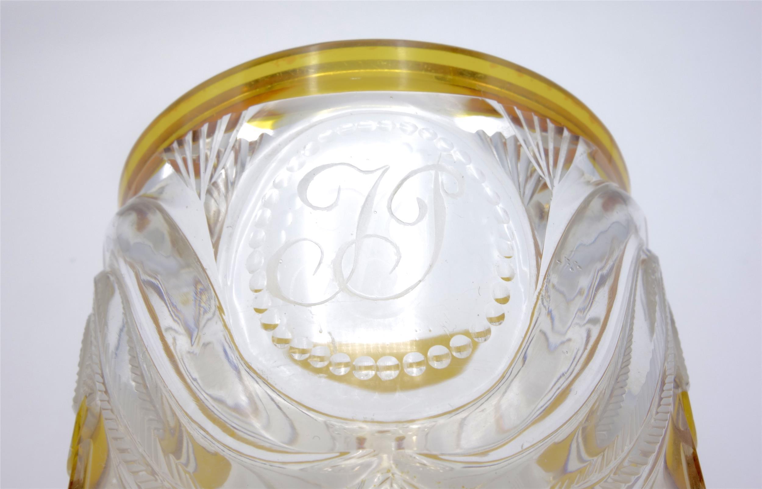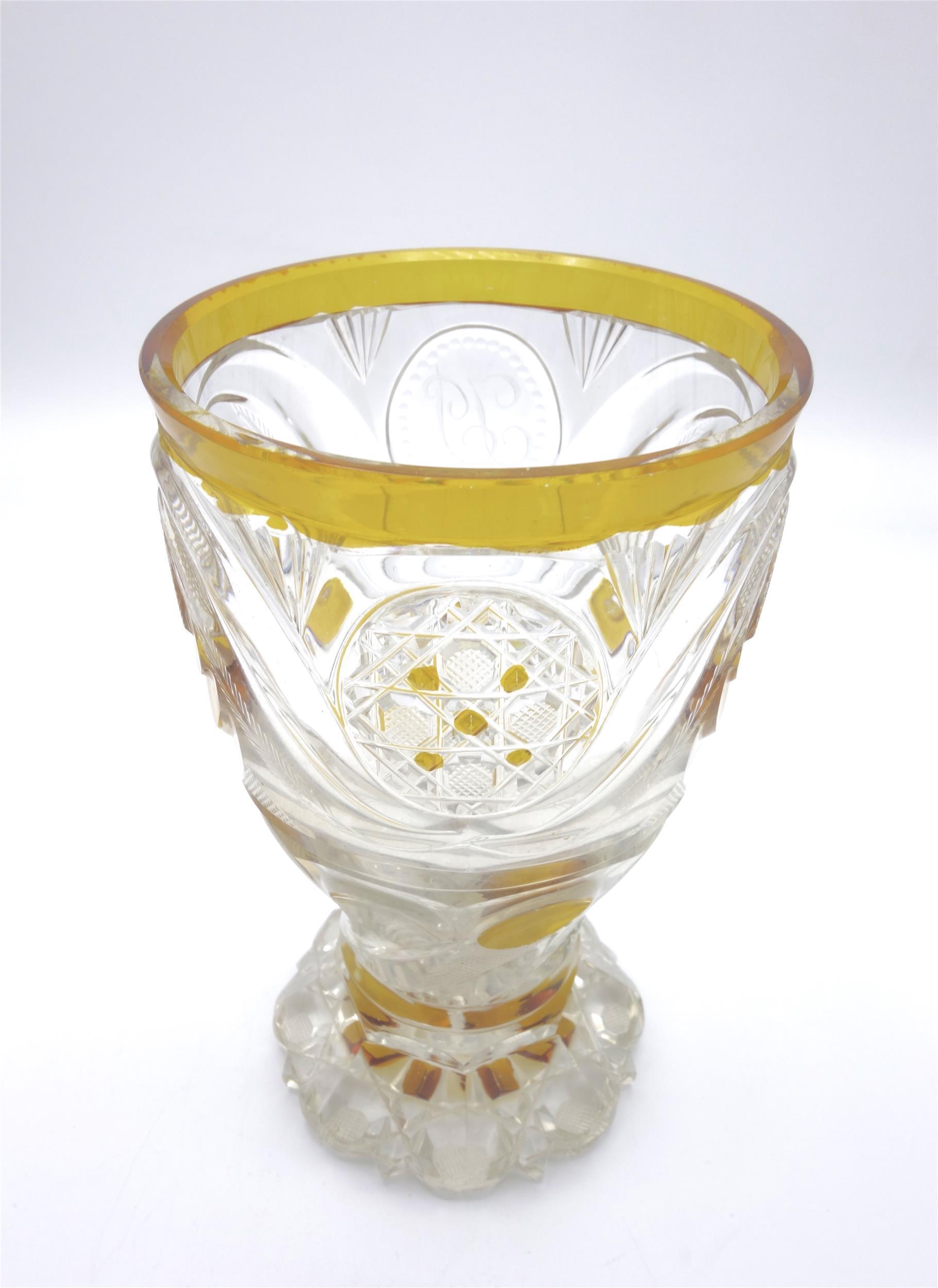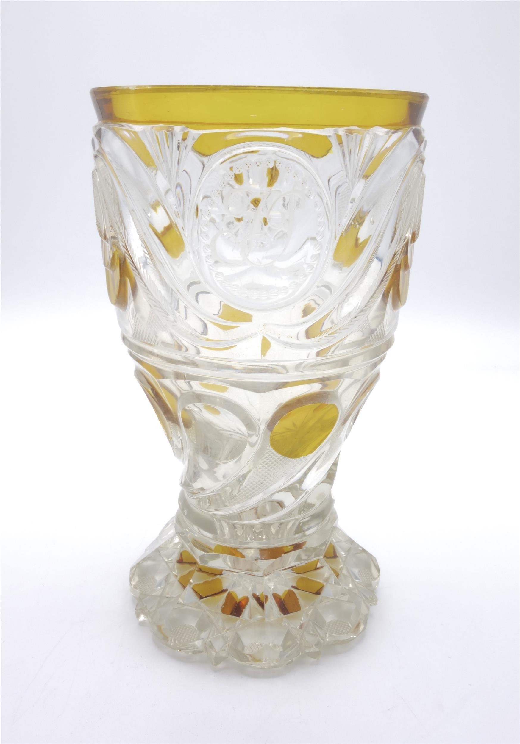 Prunkbecher, farbloses Glas mit gelb gebeizten Elementen, 19.Jh.