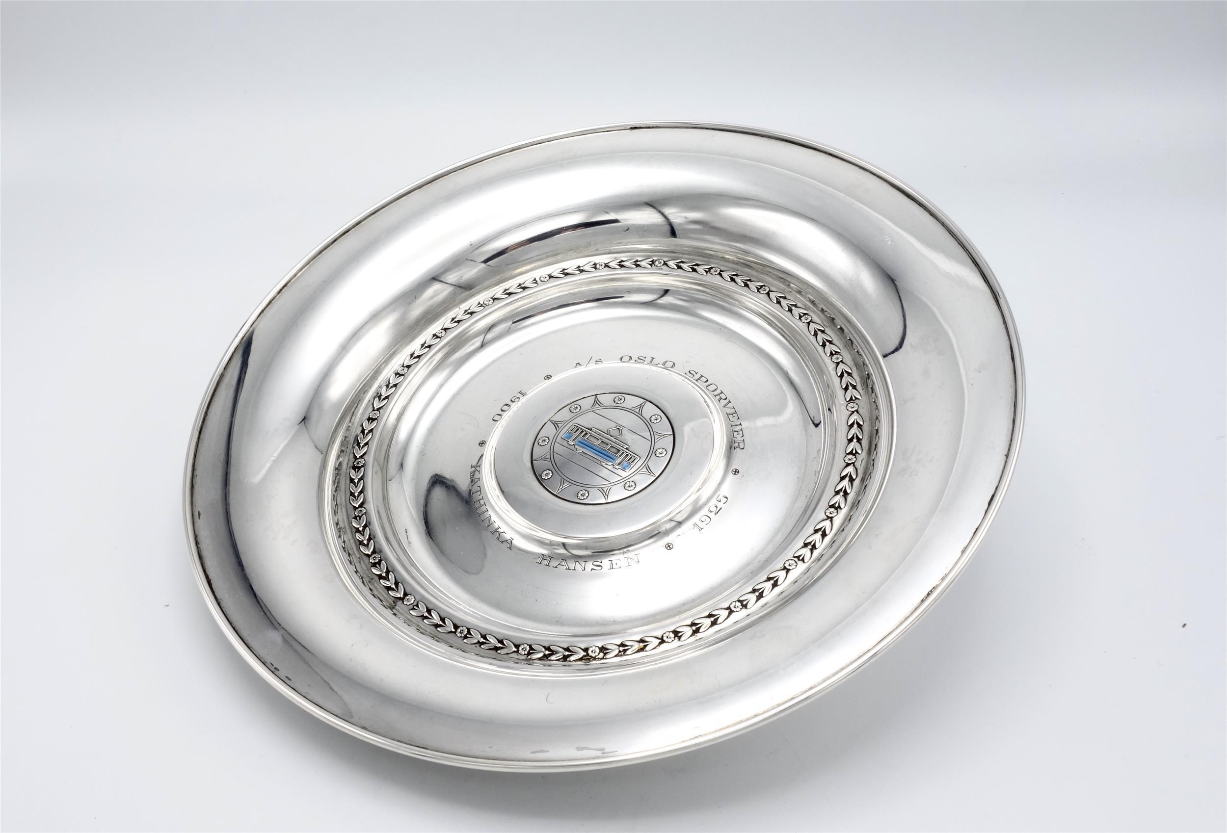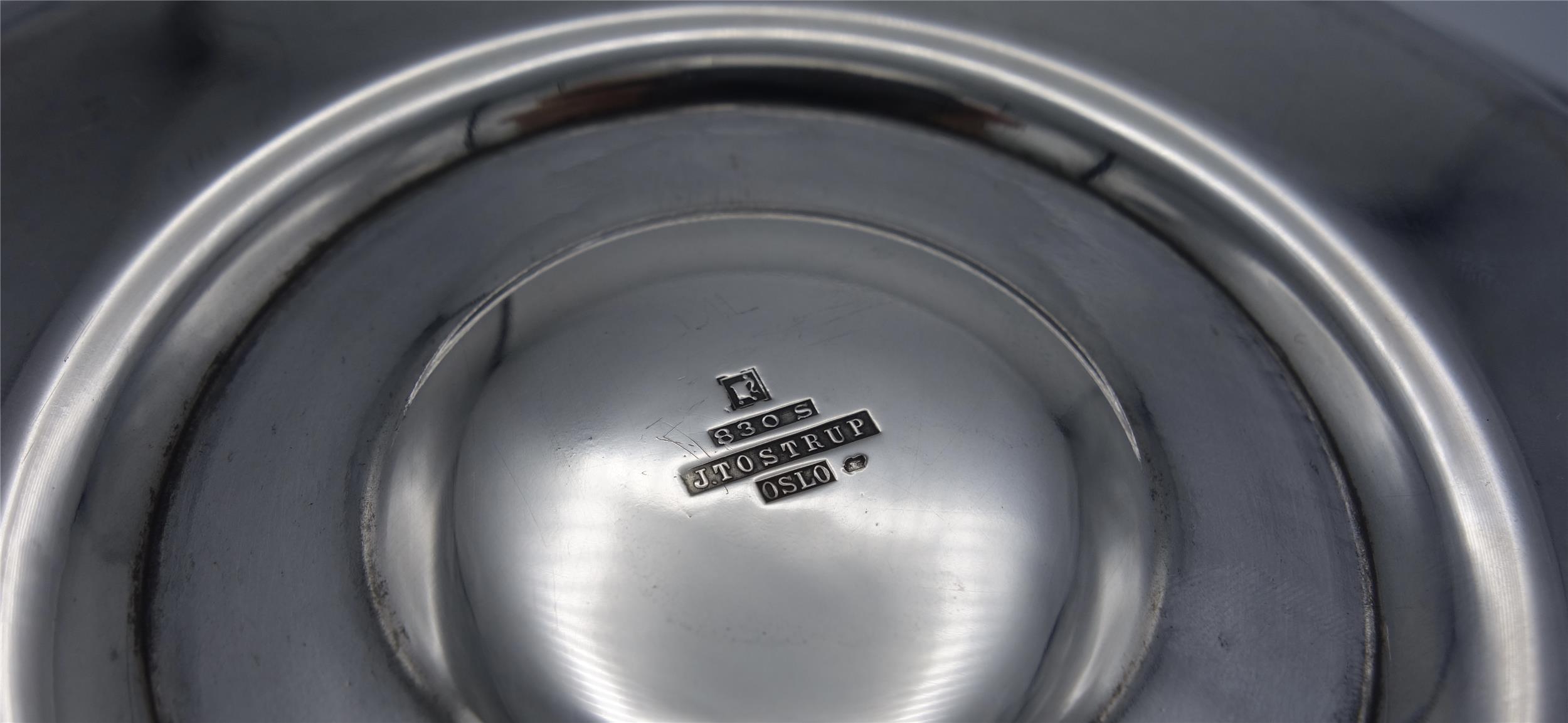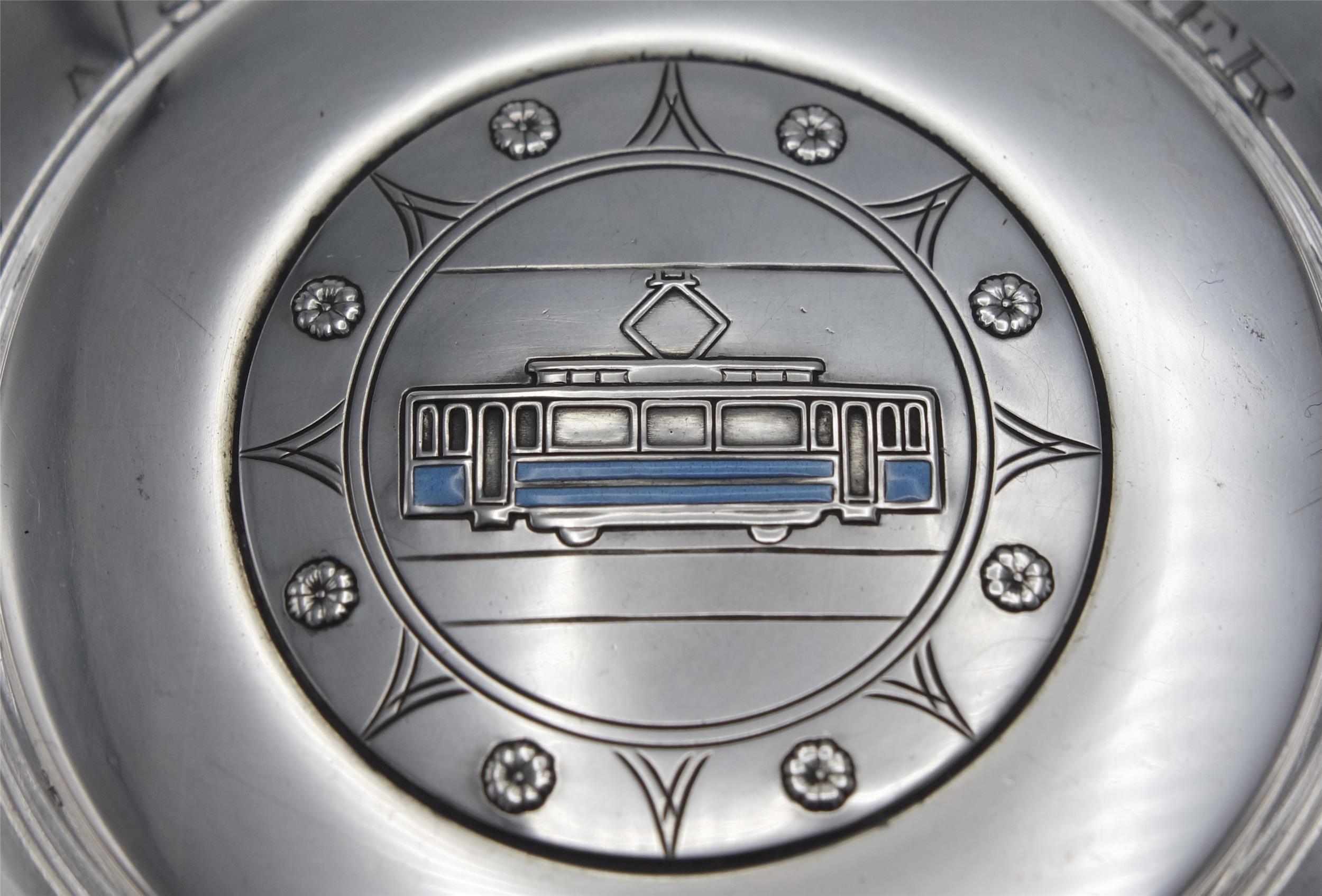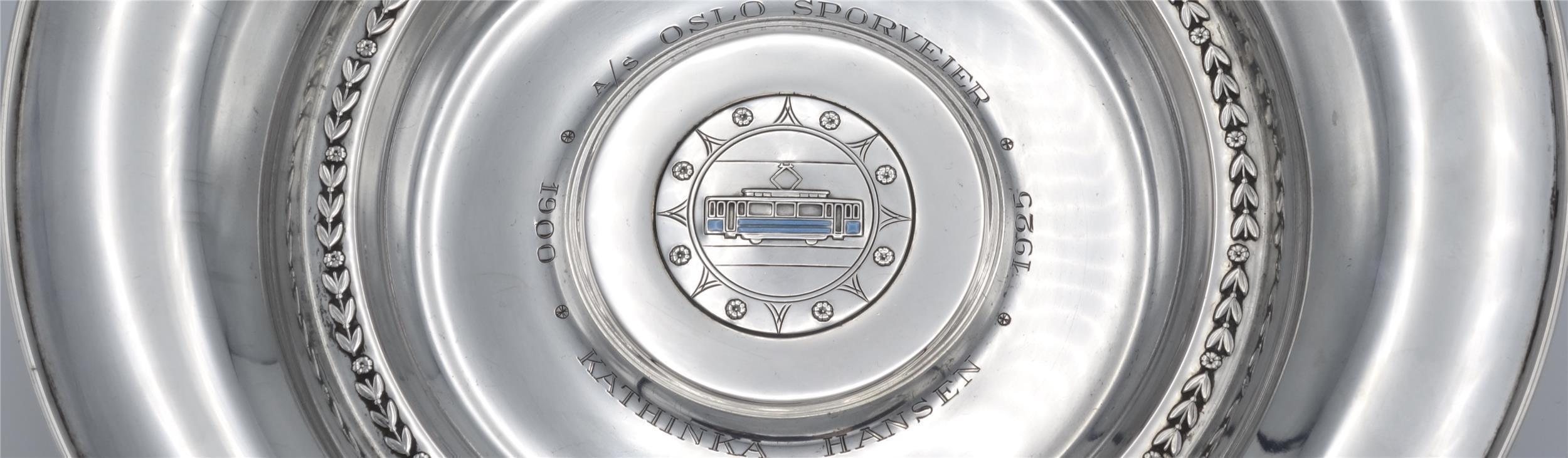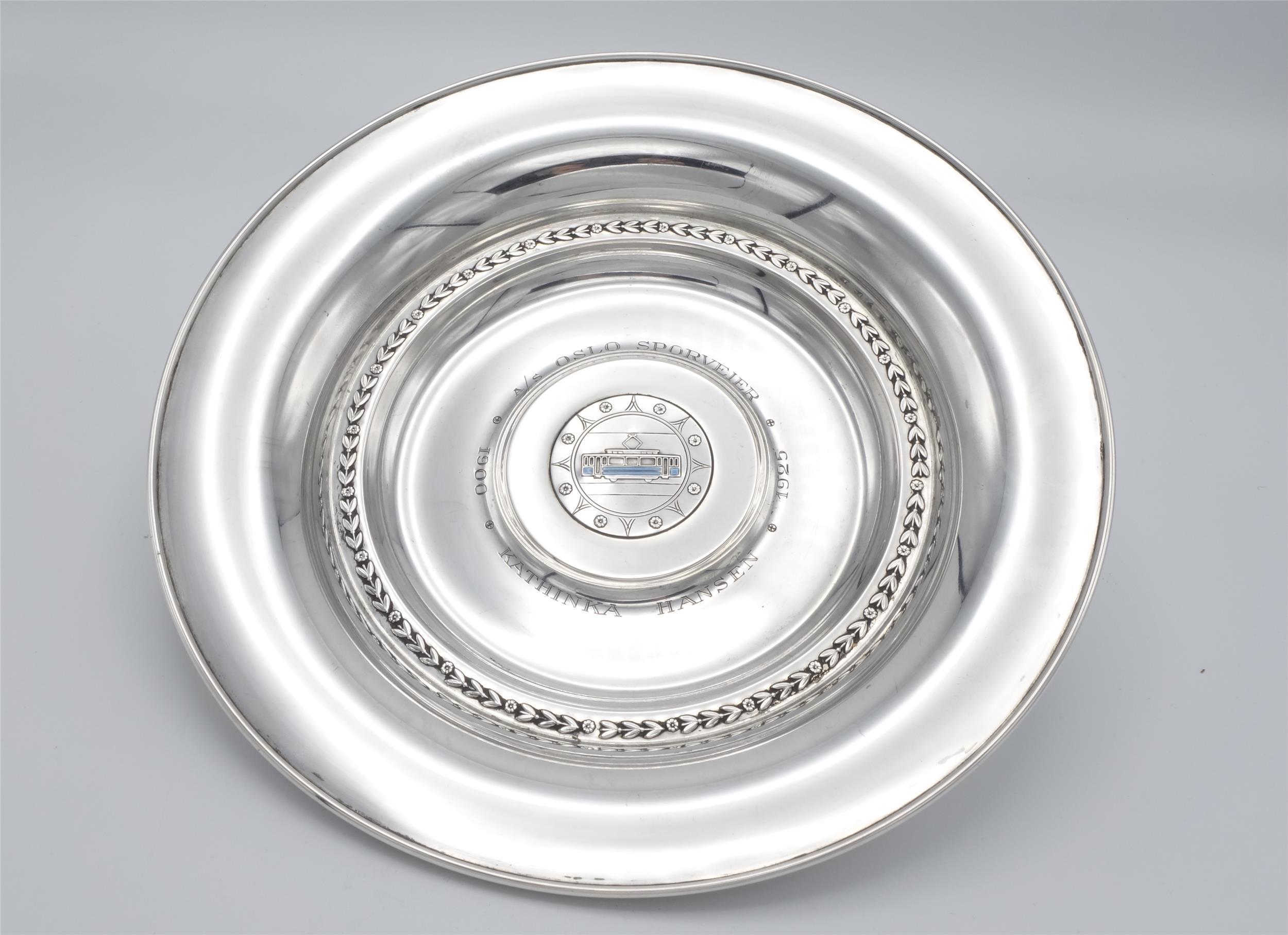 Silberteller mit dem sehr seltenen Motiv einer Straßenbahn, Norwegen - Oslo, J.Tostrup, 1925