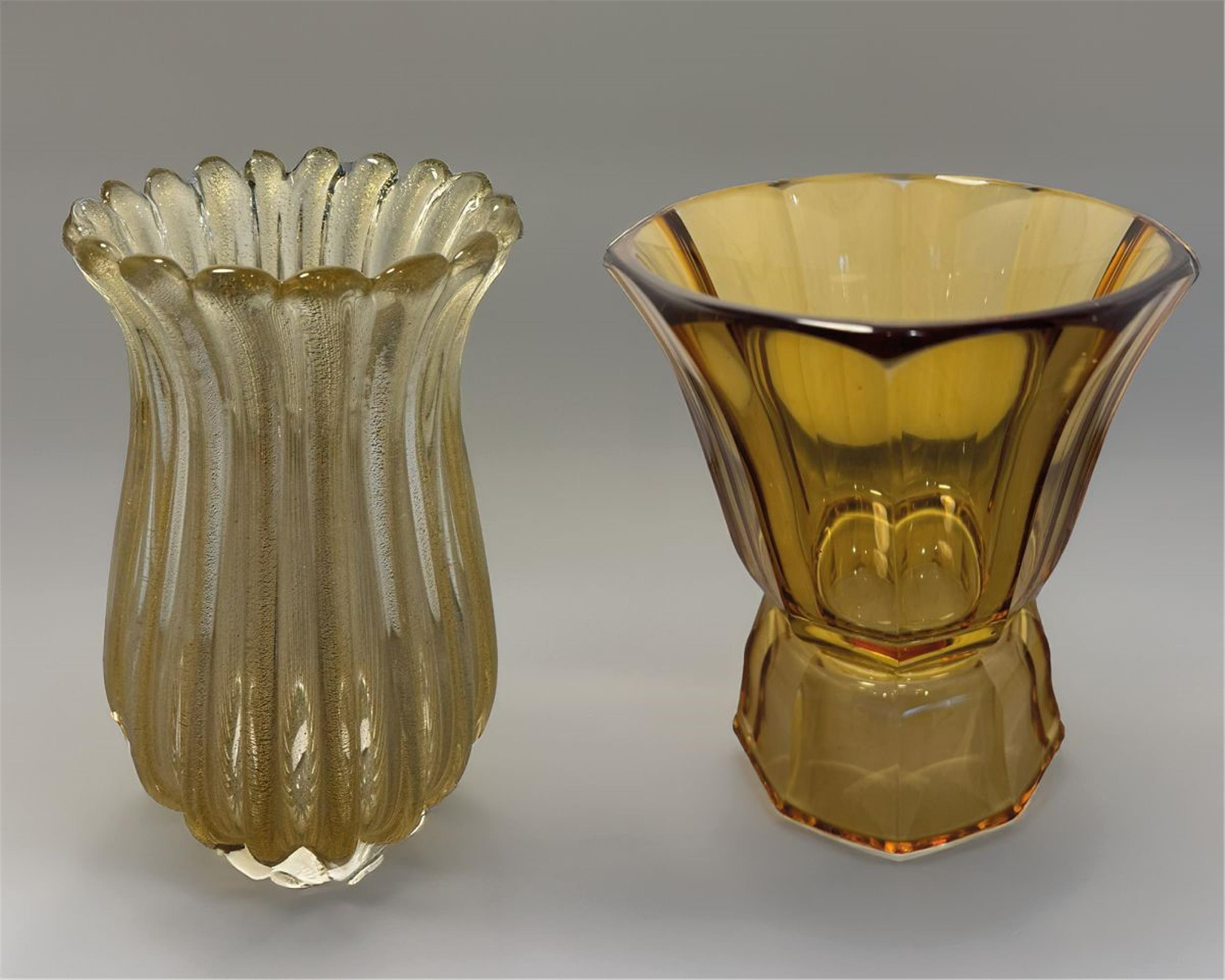 links: Glasvase mit Goldfolieneinschlüssen, “Cordonato d’ Oro“, Barovier & Toso, Murano, 1950er