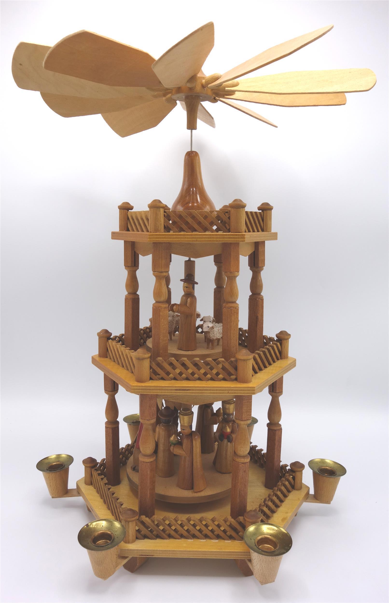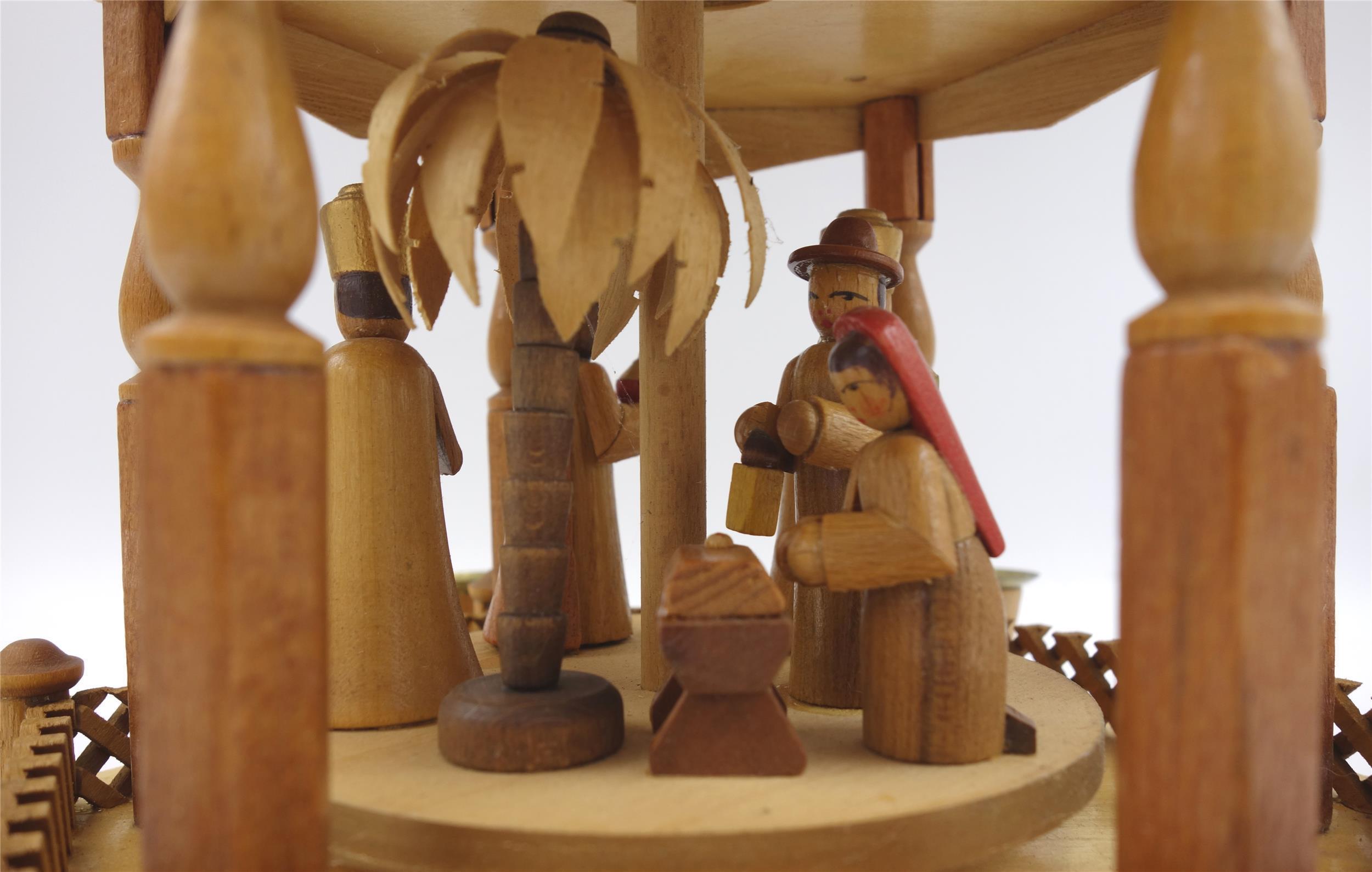 Weihnachtspyramide Erzgebirge, Motiv Christi Geburt, um 1970, funktionsfähig.